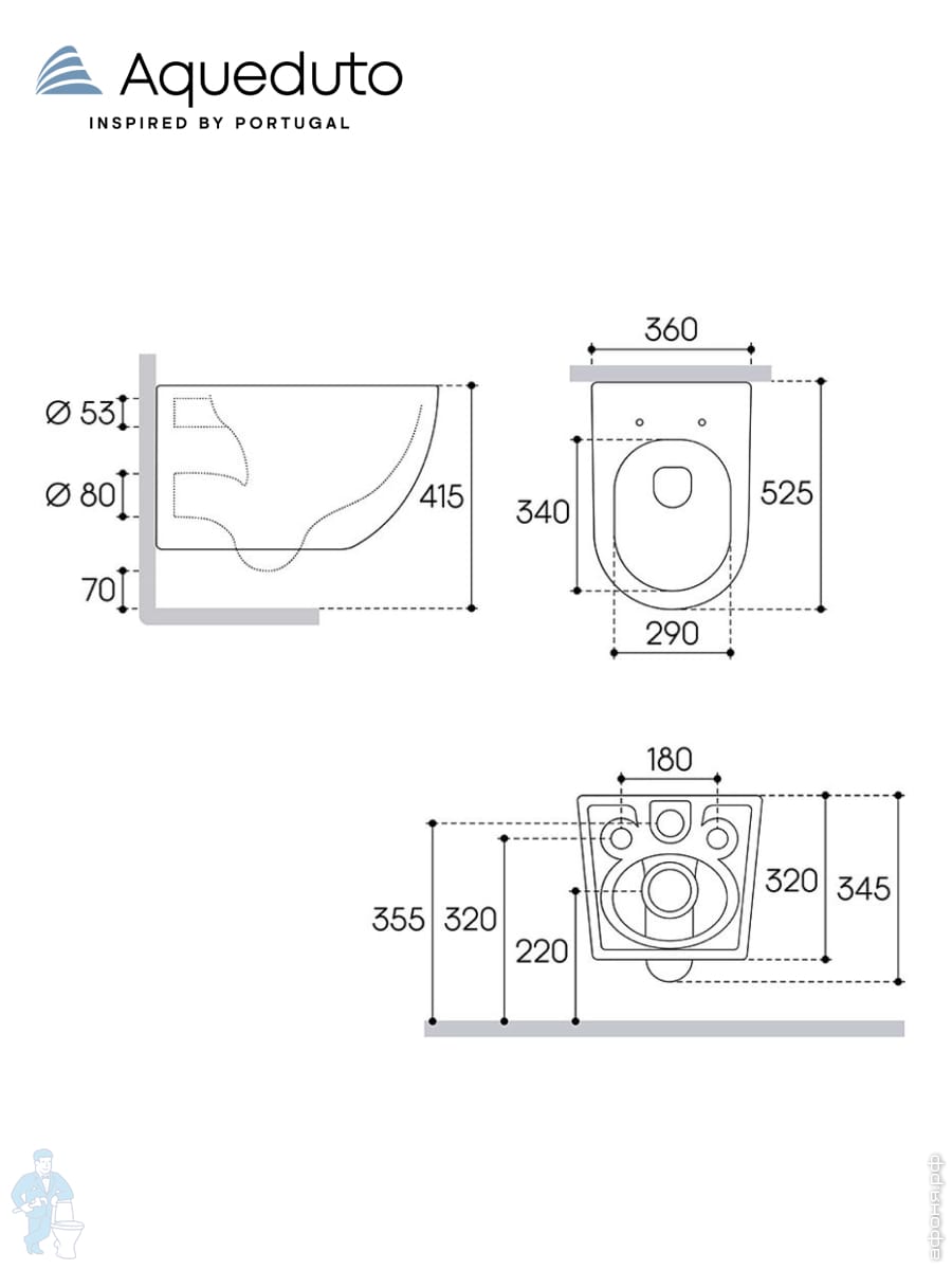 Унитаз подвесной Aqueduto Esteta 520х365х320 безободковый,сиденье с микролифтом,белый глянец EST0110Код: 337520