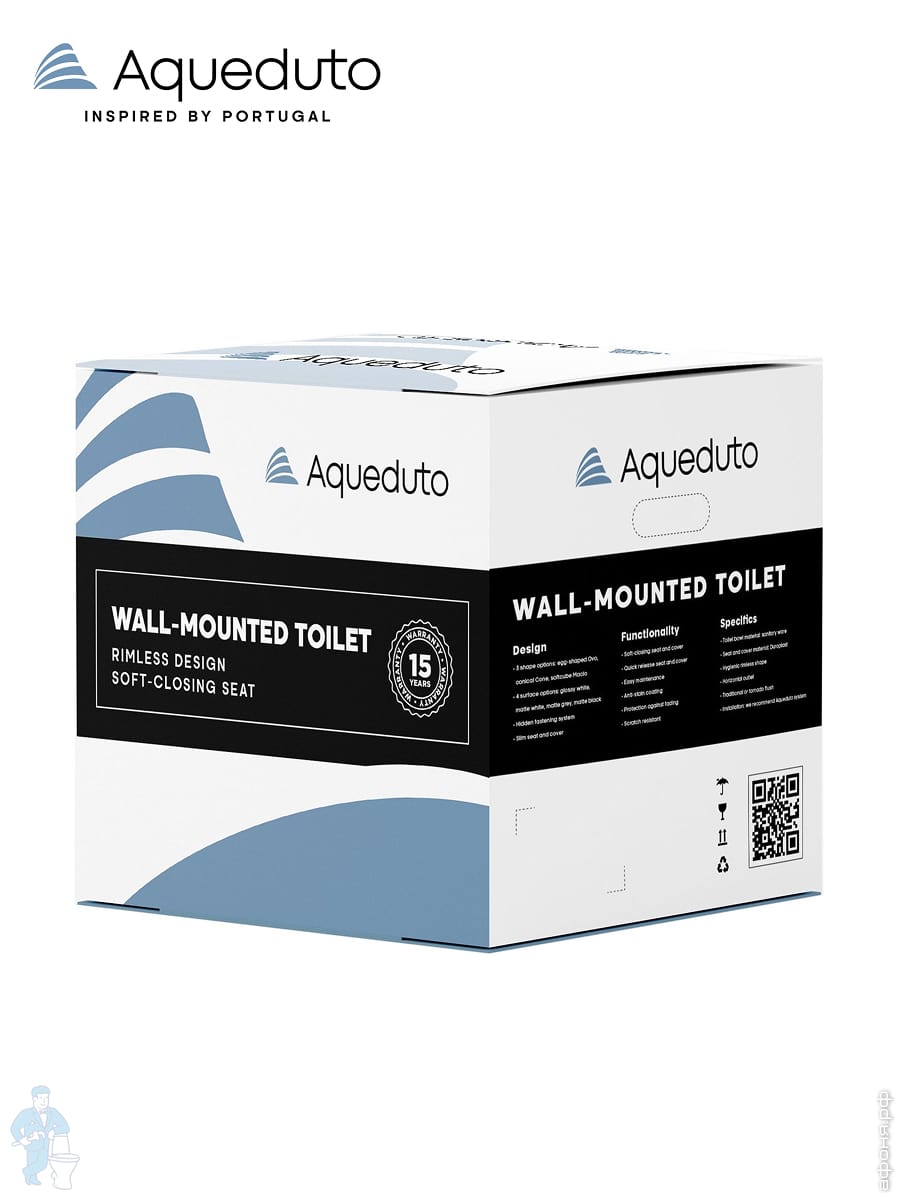 Унитаз подвесной Aqueduto Ovo 360x525х320 безободковый, сиденье с микролифтом, белый матовый OVO0120Код: 314406