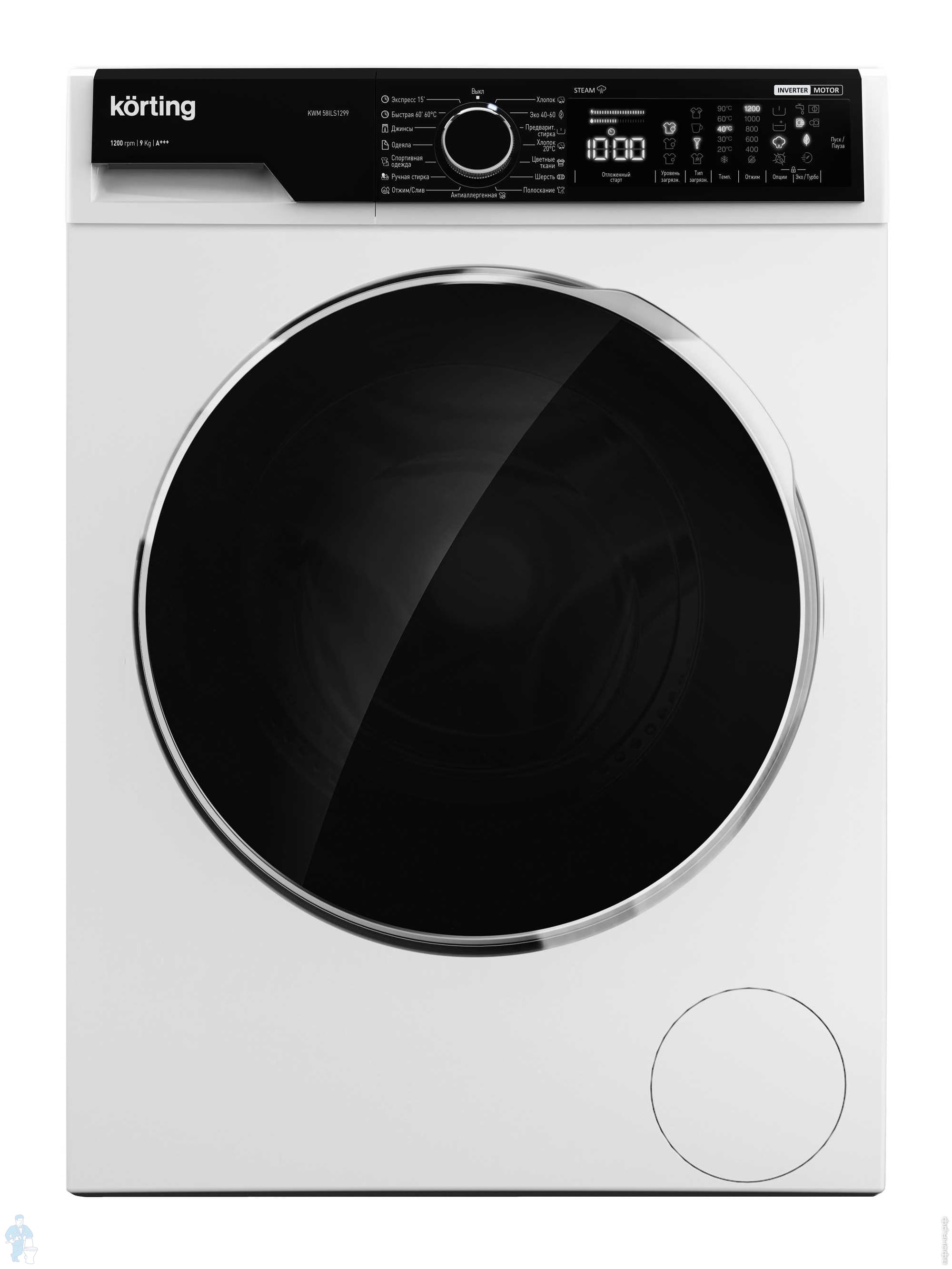 Стиральная машина Korting KWM 60DS1499 (850х595х582) загрузка 10 кг, 1400 об/мин, 12 программ, белаяКод: 360388