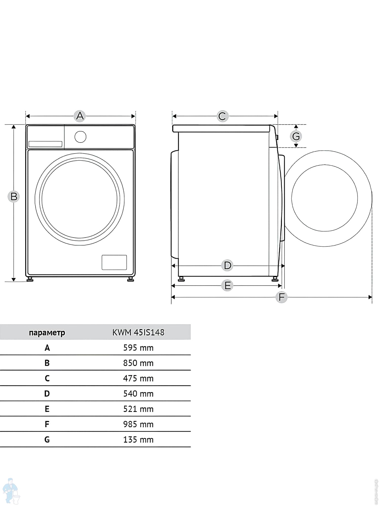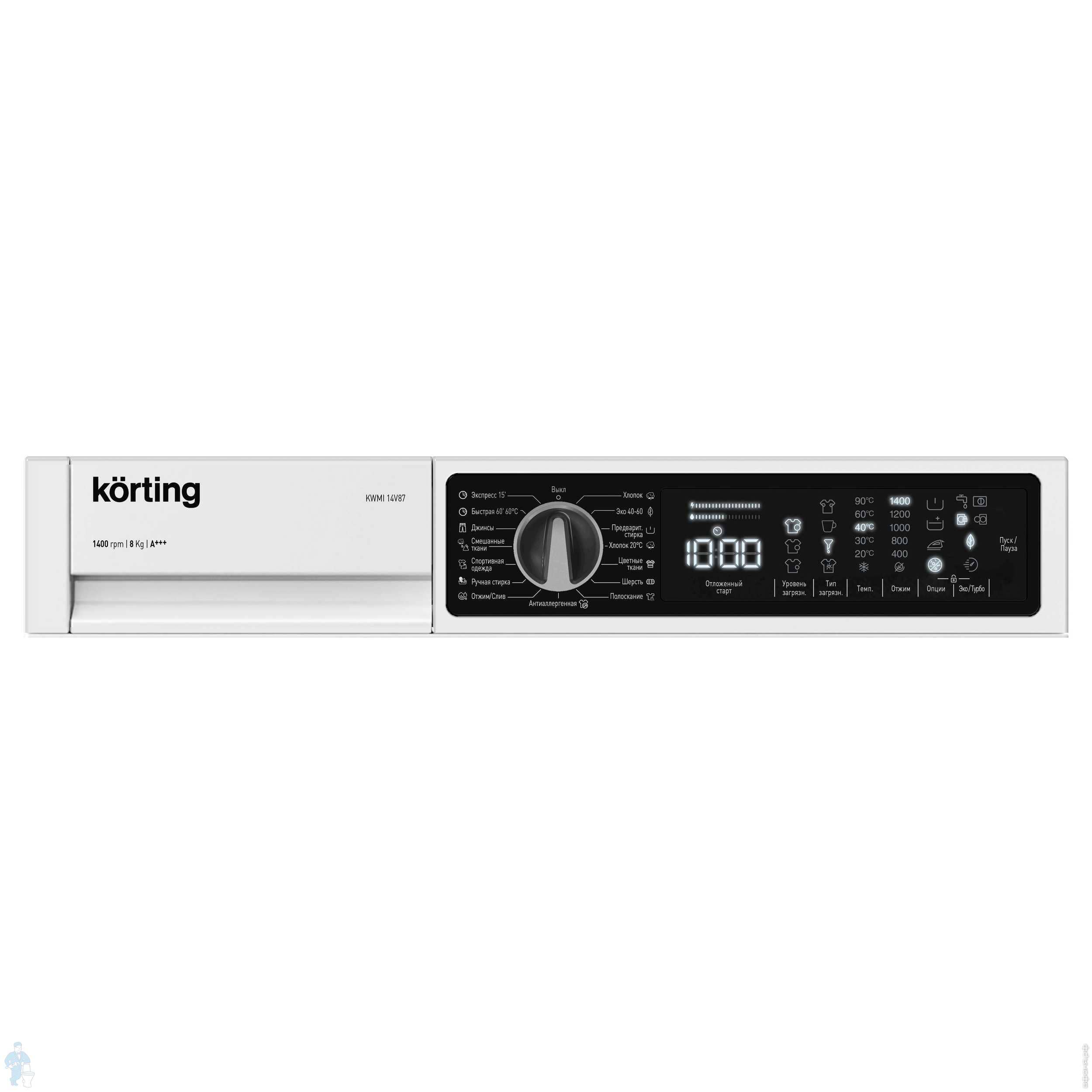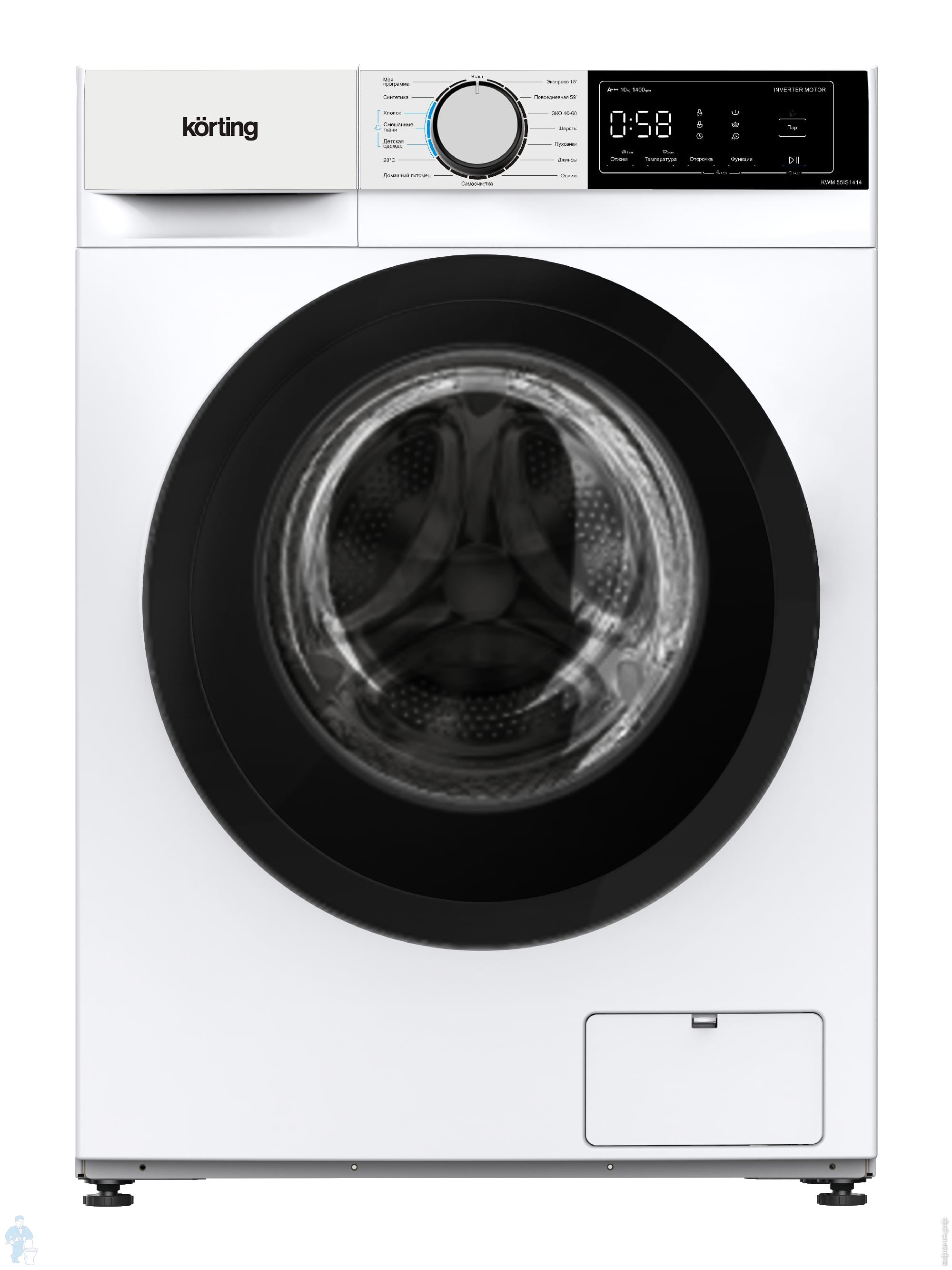 Стиральная машина Korting KWM 55IS1414 (850х595х535) загрузка 10 кг, 1400 об/мин, 15 программ, белаяКод: 360390