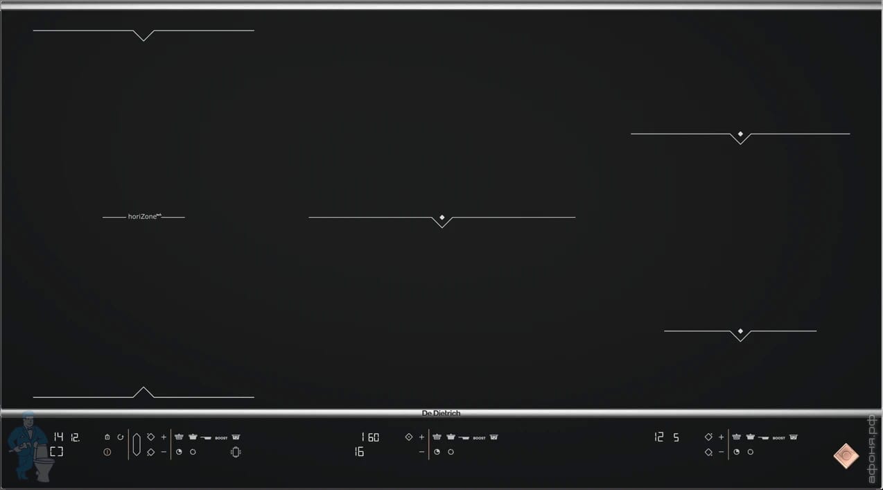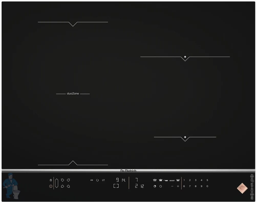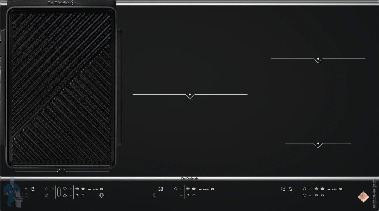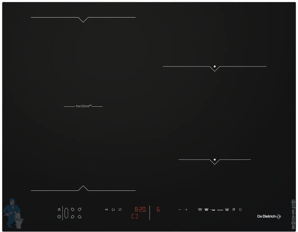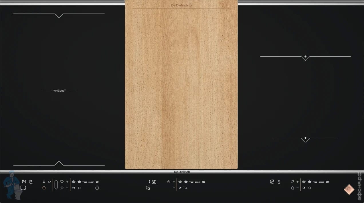 Индукционная варочная панель De Dietrich (650х515) 4 зоны нагрева, horiZone, доска, черная DPI7686XSКод: 288268