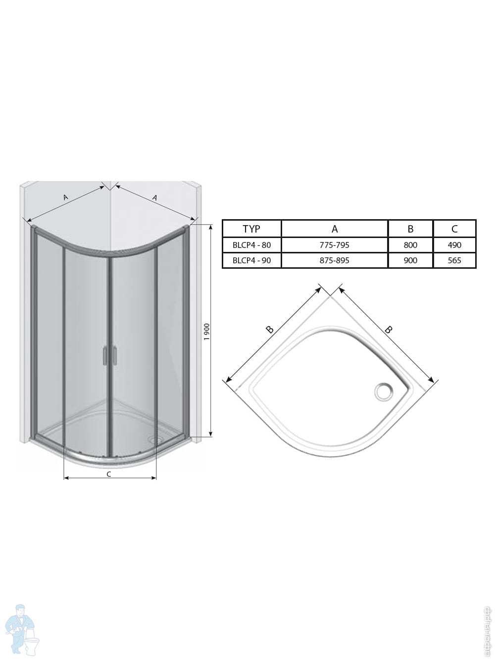 Душевой уголок RAVAK BLIX BLCP4-90 (895х895х1900) раздвиж.двери, стекло, блест.+Transparent AntiCalcКод: 35664