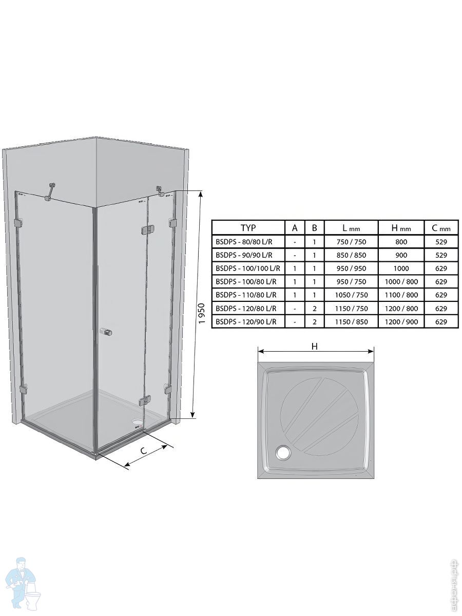 Душевой уголок RAVAK BRILLIANT BSDPS-90/90L (895х895х1950) распашная дверь, стекло, хром+TransparentКод: 37049