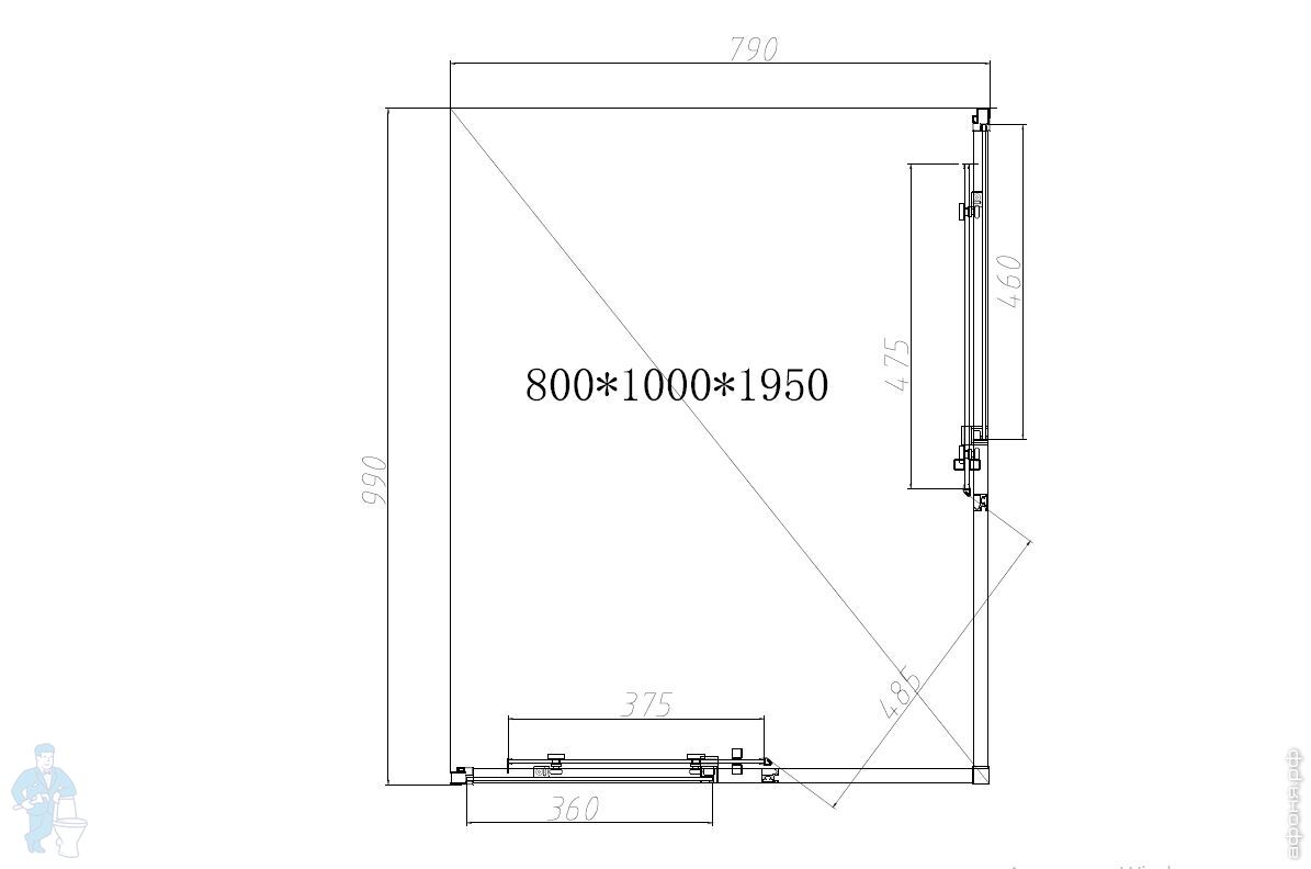 Душевой уголок BelBagno Uno (1000х800х1950) UNO-195-AH-2-100/80-P-Cr прямоугольный,стекло прозр/хромКод: 241777