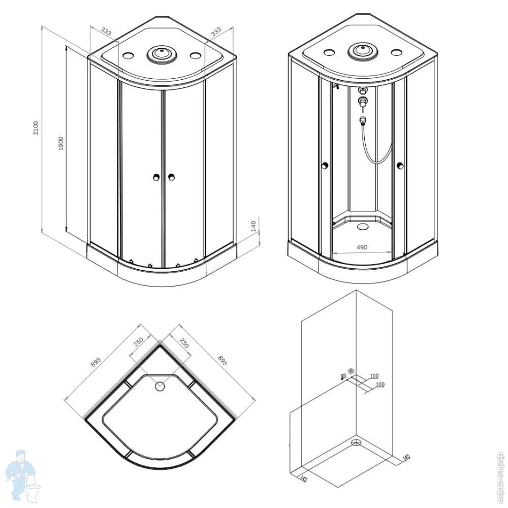 Душевая кабина AM.PM X-Joy Square 900х900х2100 стекло прозрачное, профиль черный мат. W94C-403-090BTКод: 313671