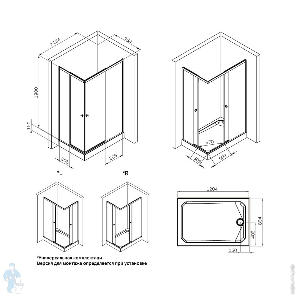 Душевое ограждение AM.PM X-Joy Square Slide 784х1184х1900 черное/стекло прозрачное W94G-403-12080-BТКод: 296531