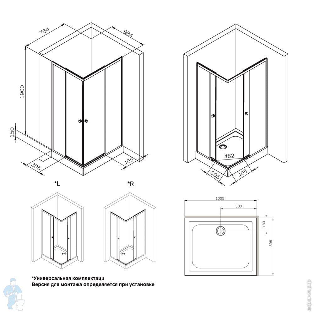 Душевой уголок AM.PM X-Joy Twin Slide (90х90х185) профиль матовый черный/прозрачное W88G-205-090BT64Код: 198707