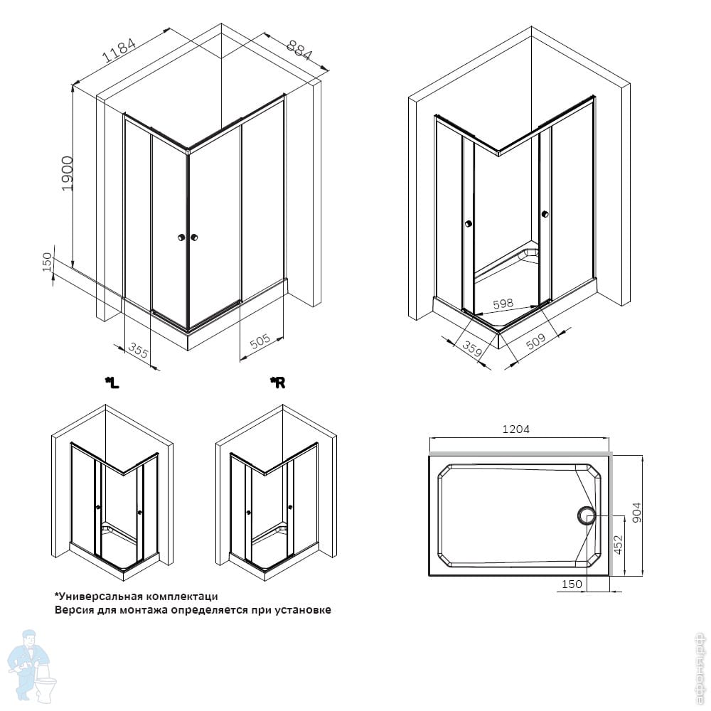 Душевое ограждение AM.PM X-Joy Square Slide 884х1184х1900 черное/стекло прозрачное W94G-403-12090-BТКод: 296533