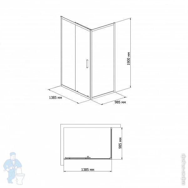 Душевой уголок BAND HOURS GEMINI/VEGA-GLASS 910 900х1000х1950 откатная дверь, без поддона,черный матКод: 151538