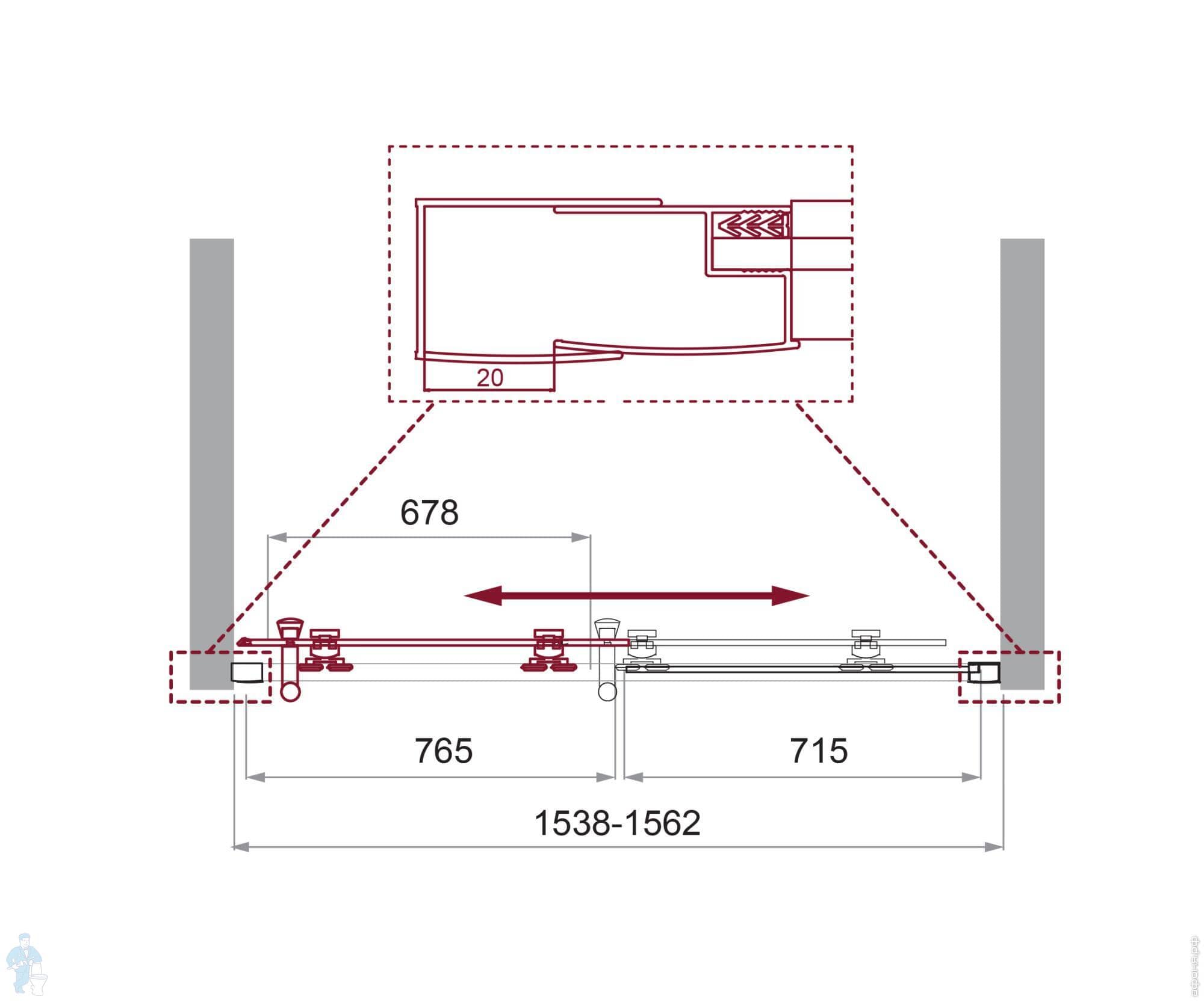Дверь в нишу BelBagno Uno (1550x1950) UNO-195-BF-1-155-C-Cr раздвижная, стекло прозрач./профиль хромКод: 228326