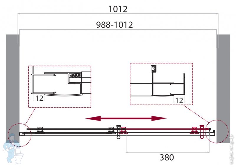 Дверь в нишу BelBagno Uno (1400x1950) UNO-195-BF-1-140-C-NERO раздвижная,стекло прозр/профиль черныйКод: 273089