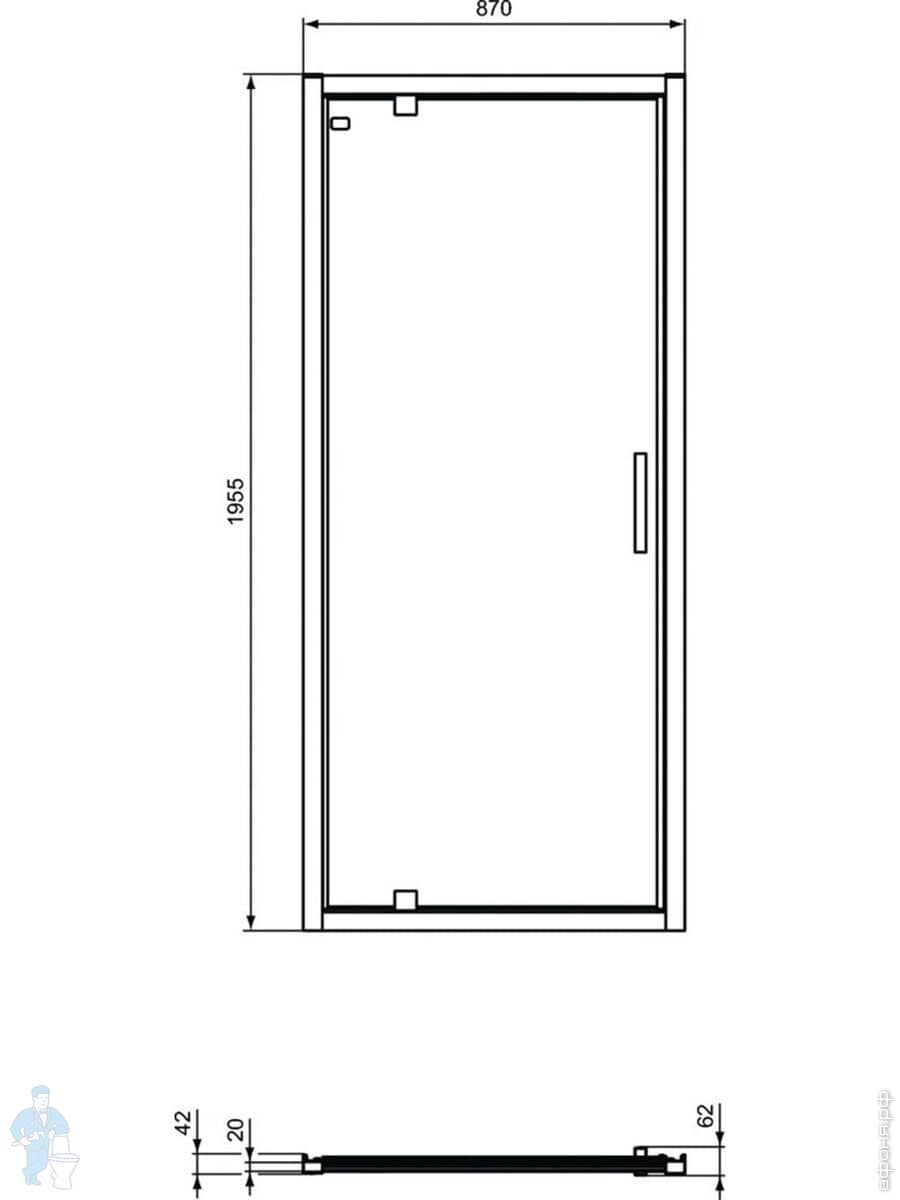 Душевая дверь Ideal Standard CONNECT 2 PV (1000х1950) распашная, профиль черный/стекло прозр K9272V3Код: 212224