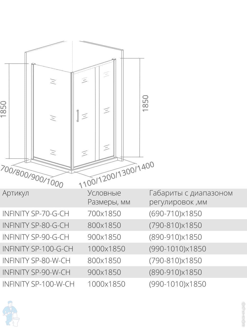 Уголок душевой GOOD DOOR BAS INFINITY CR -100-G-CH (100х100) квадрат.,раздвиж двери,стекло грейп 6ммКод: 156029