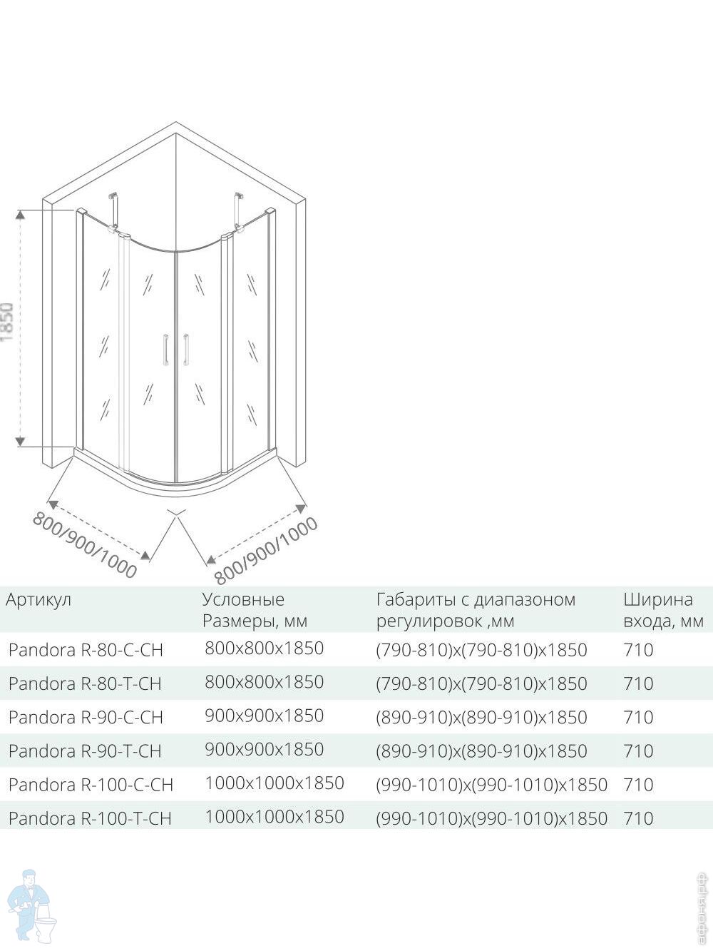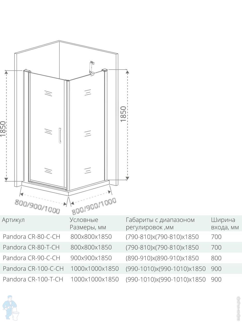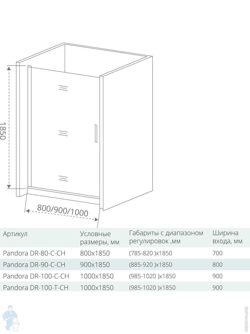 Дверь душевая GOOD DOOR BAS PANDORA DR-80-C-CH (80х185) распашн. дв., профиль хром/стекло прозрачноеКод: 89386
