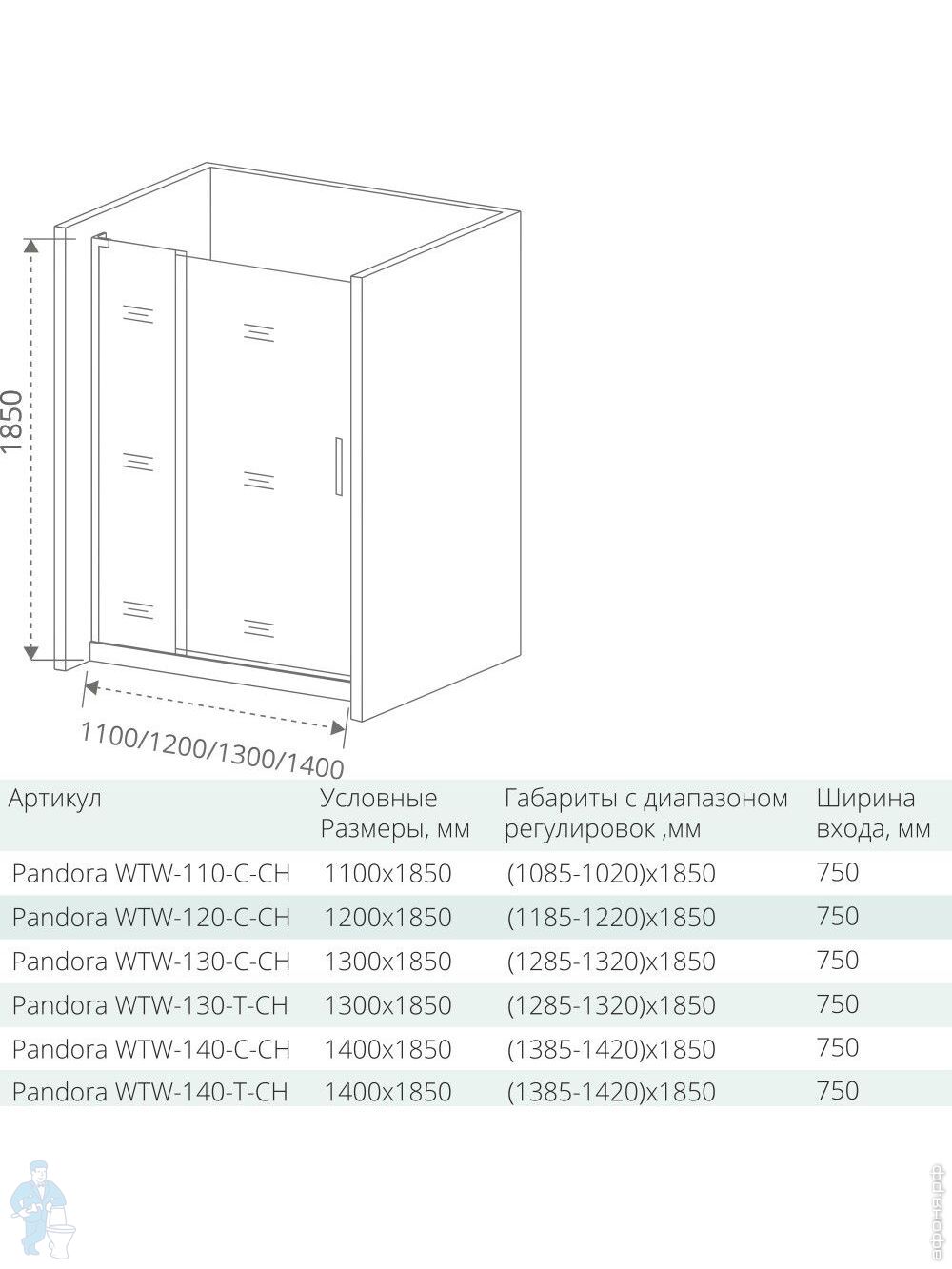 Дверь душевая GOOD DOOR BAS PANDORA WTW-110-C-CH (110х185) распашная, профиль хром/стекло прозрачноеКод: 89394