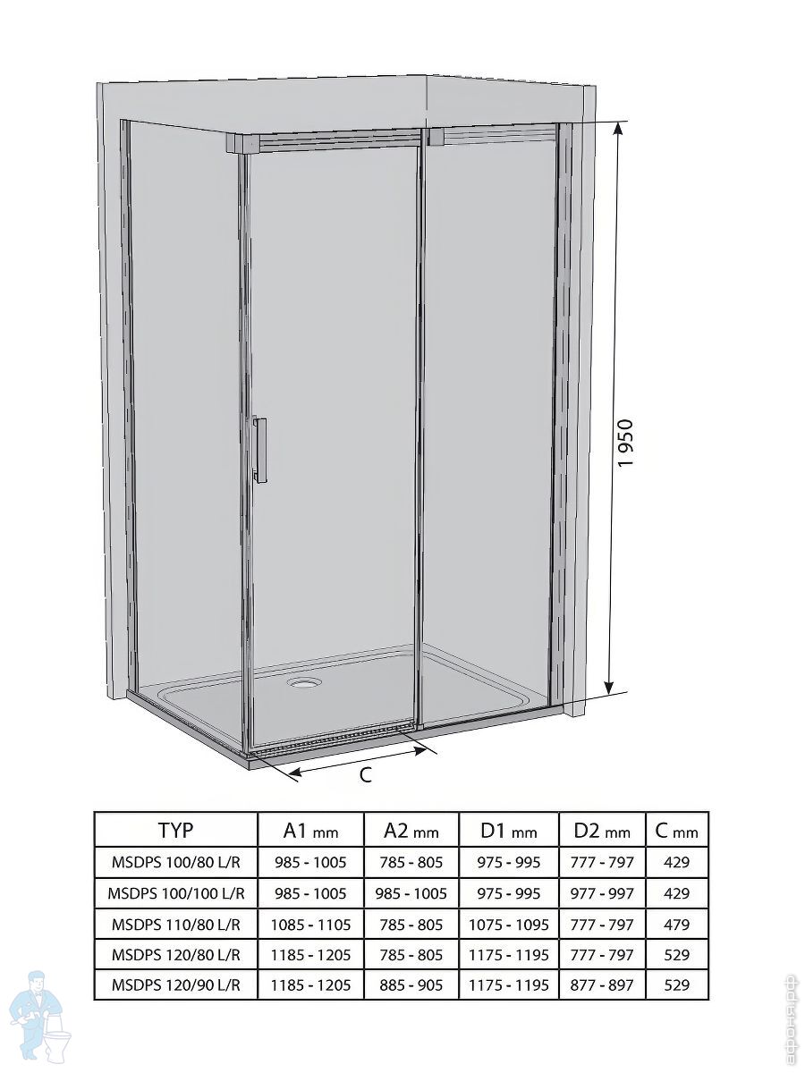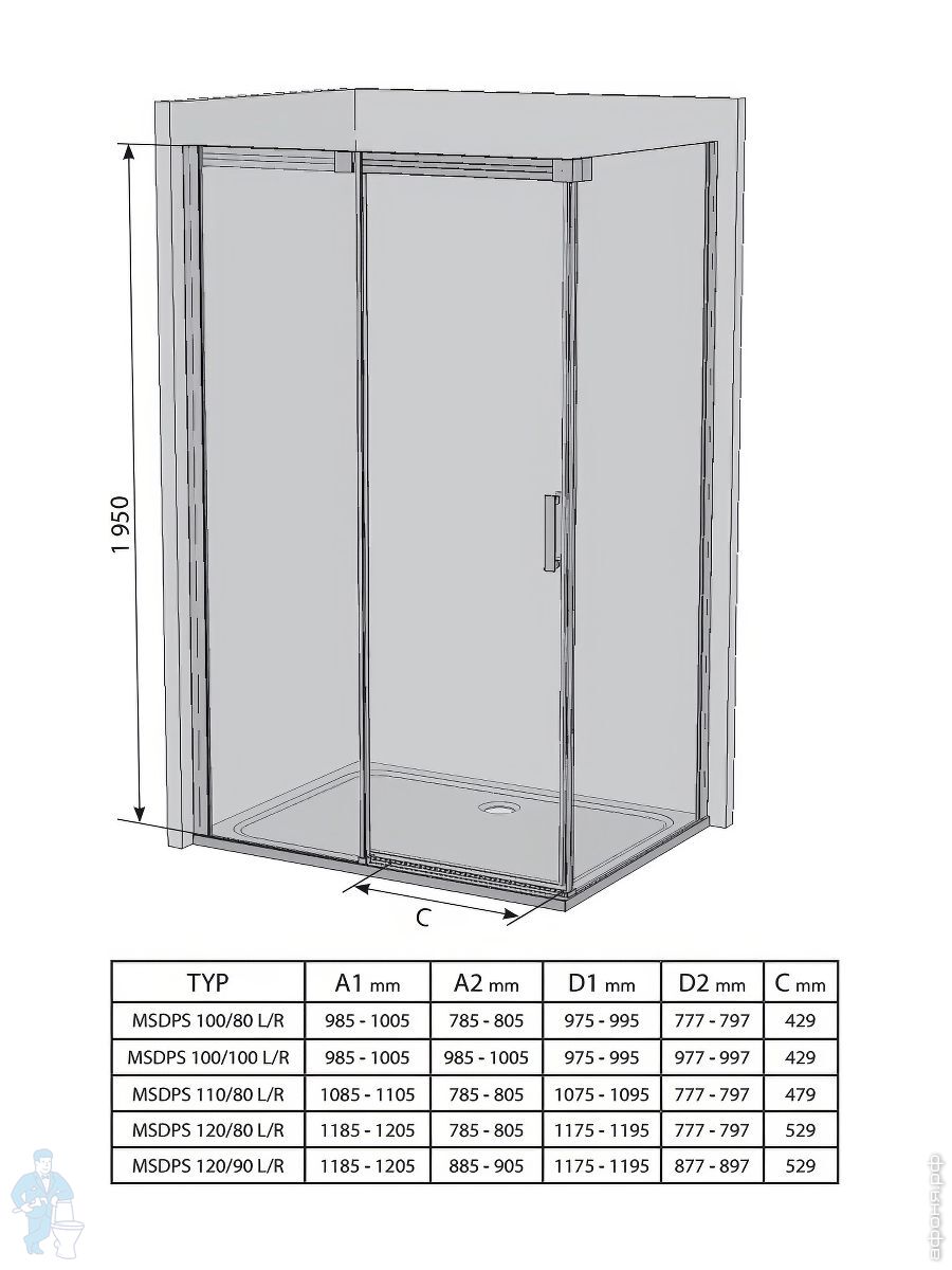 Душевой уголок RAVAK MATRIX MSDPS-100/100 R (1005х1005х1950) раздвижная дверь, блестящий+TransparentКод: 75755