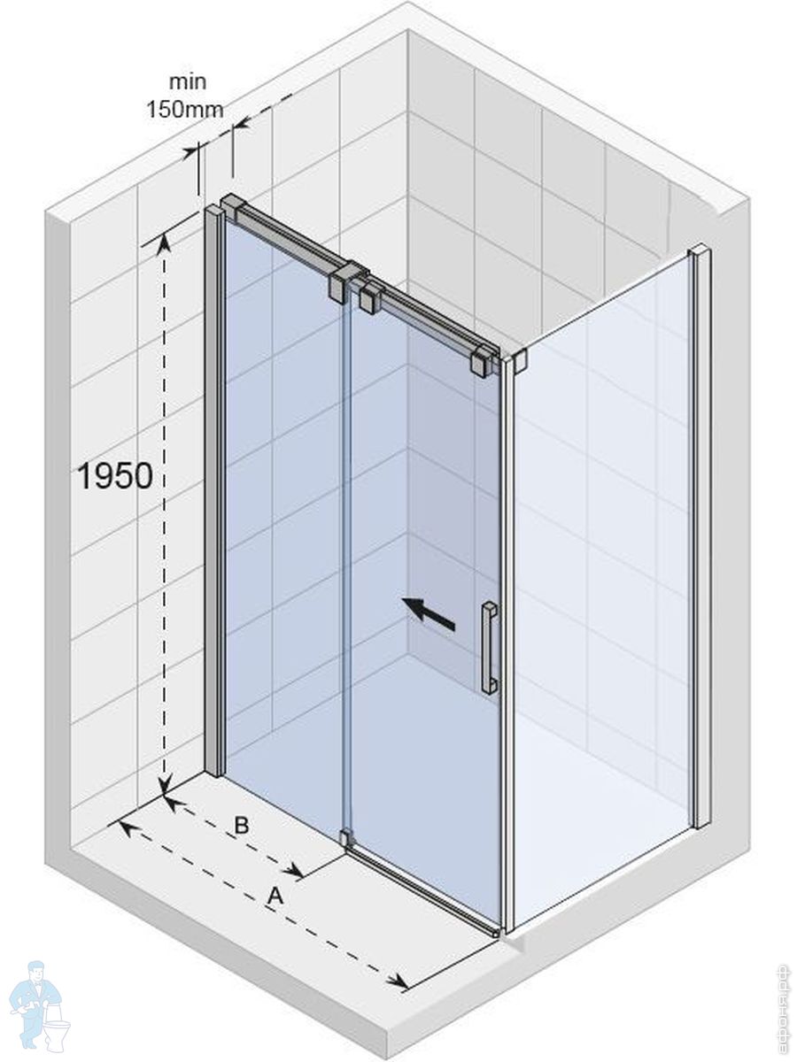 Душевая дверь (часть) RIHO OCEAN GU0204100 (1400х1950) раздвижная,профиль хром/стекло прозрачное 8ммКод: 127550