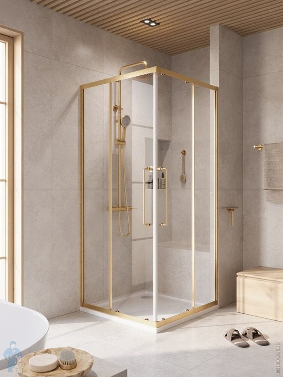 Душевой уголок CEZARES RELAX (1000х1000х2000) RELAX-304-P-1-100-C-BORO стекло прозрач/брашир. золотоКод: 316028