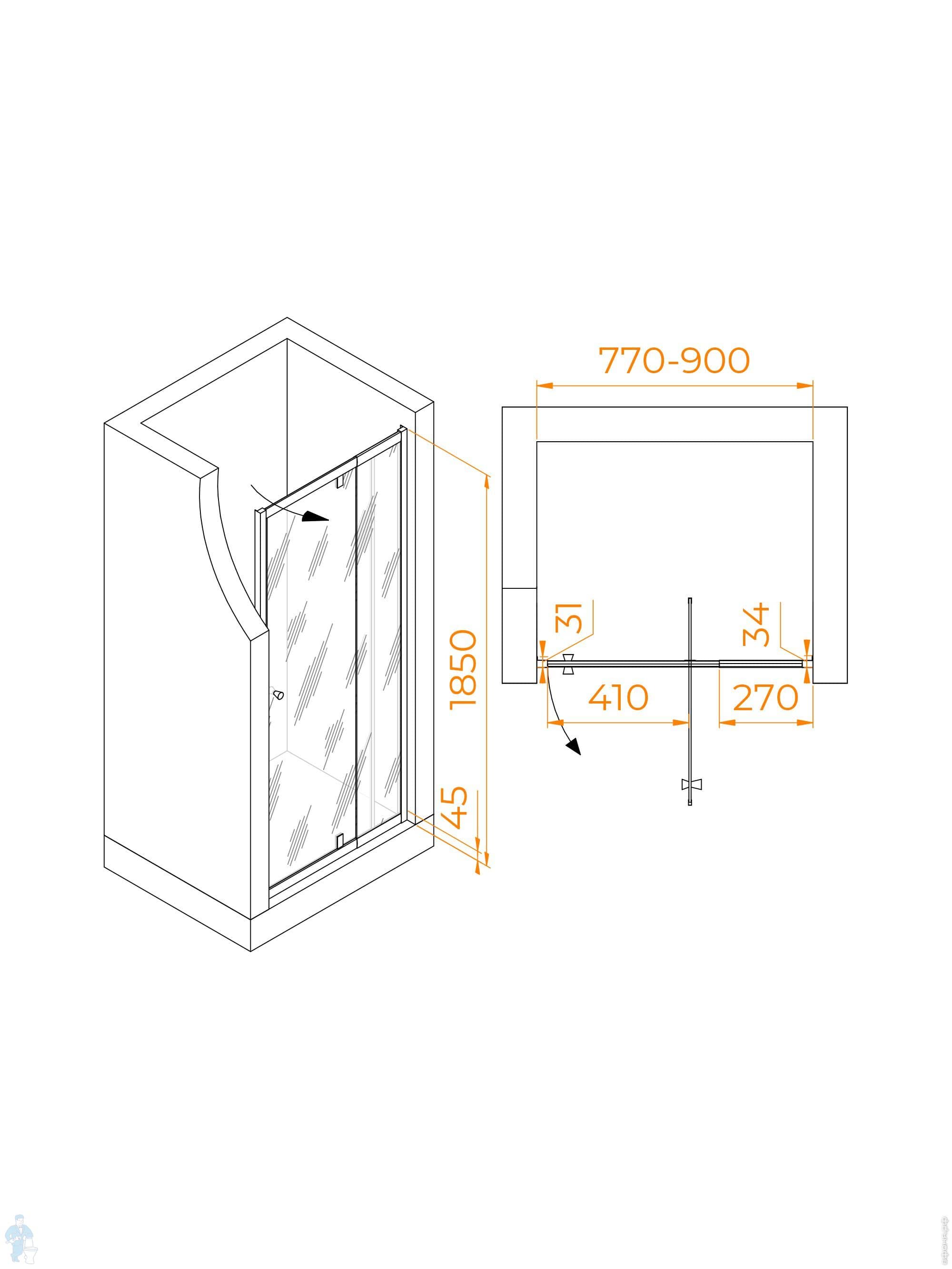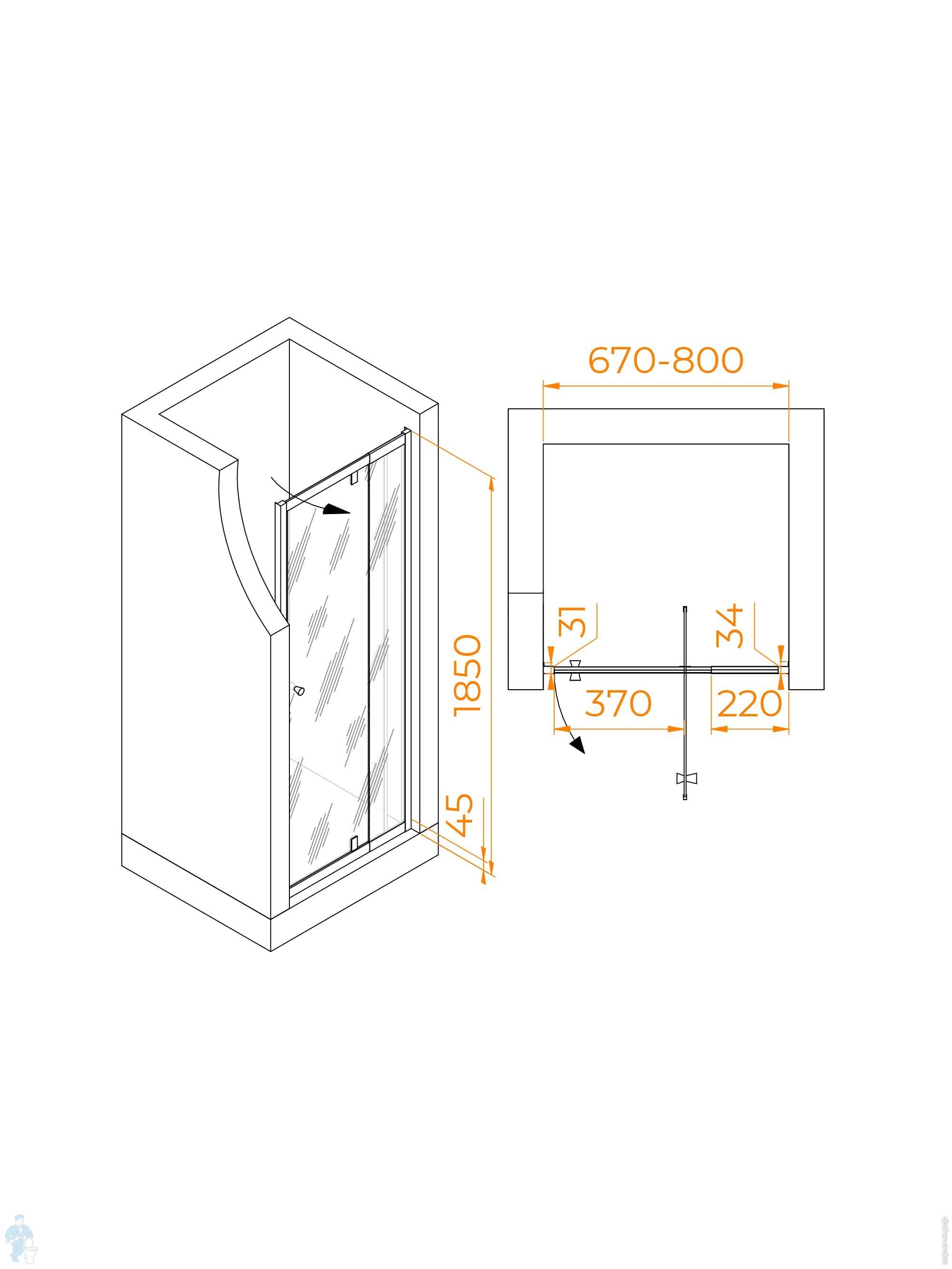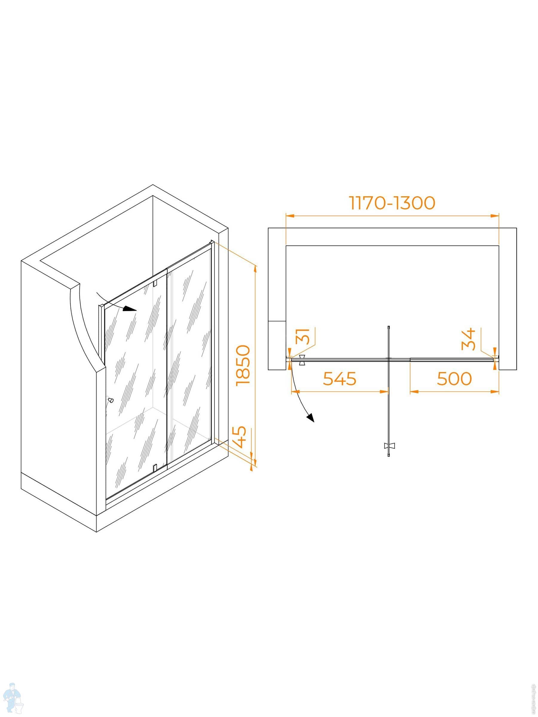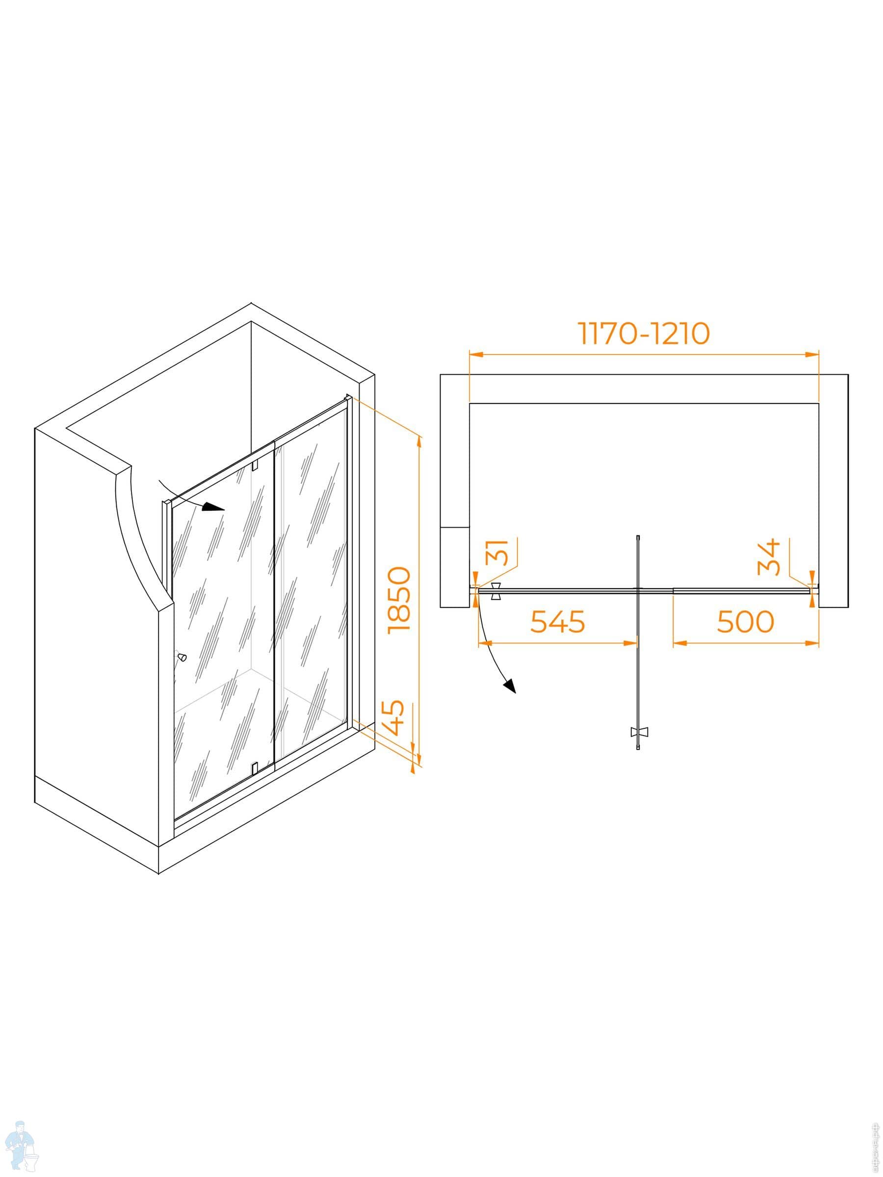 Душевая дверь RGW Passage PA-02B NEW (1200х1850) распашная, стекло 6мм прозрачное/черный 41080212-14Код: 303834