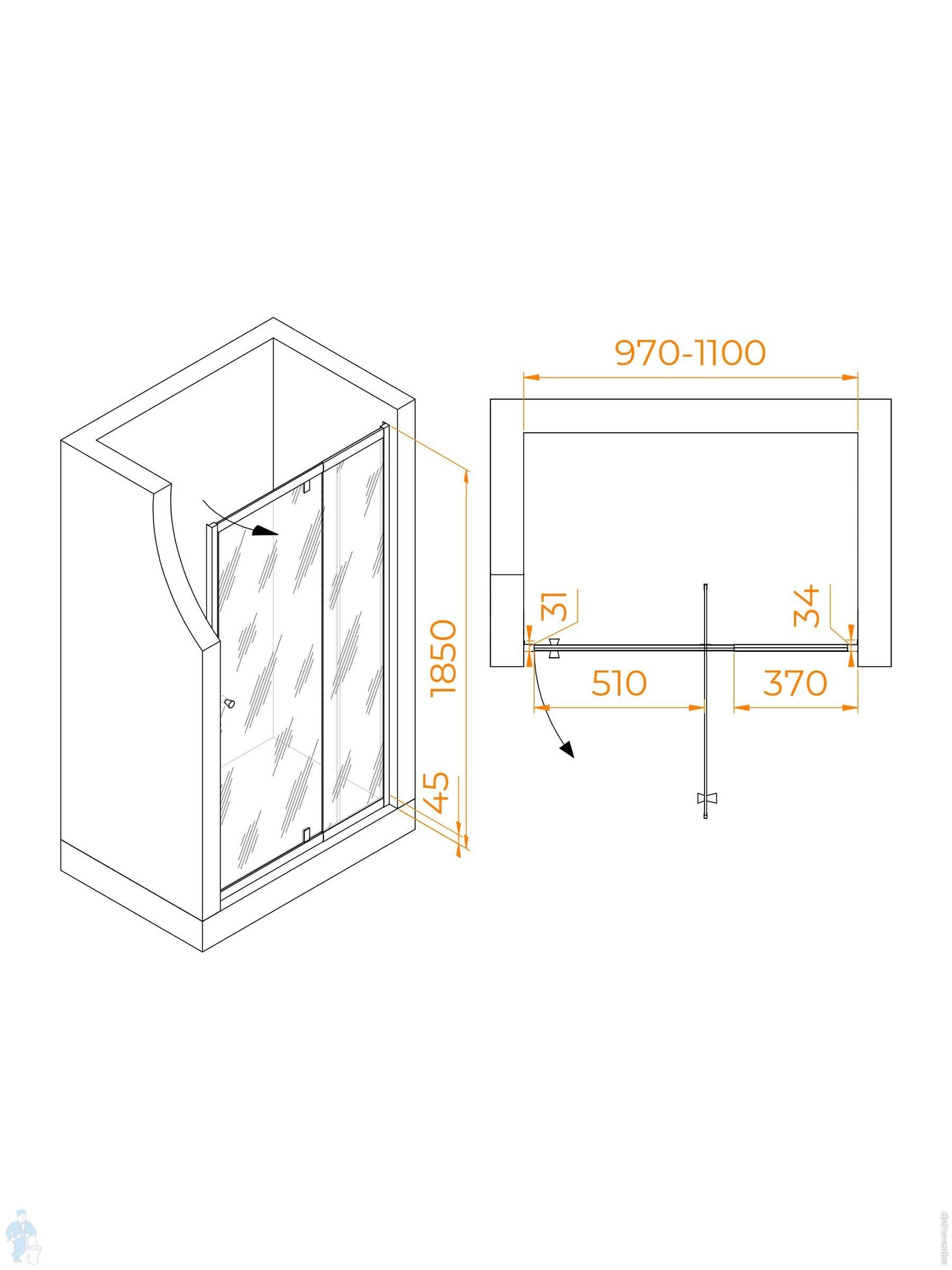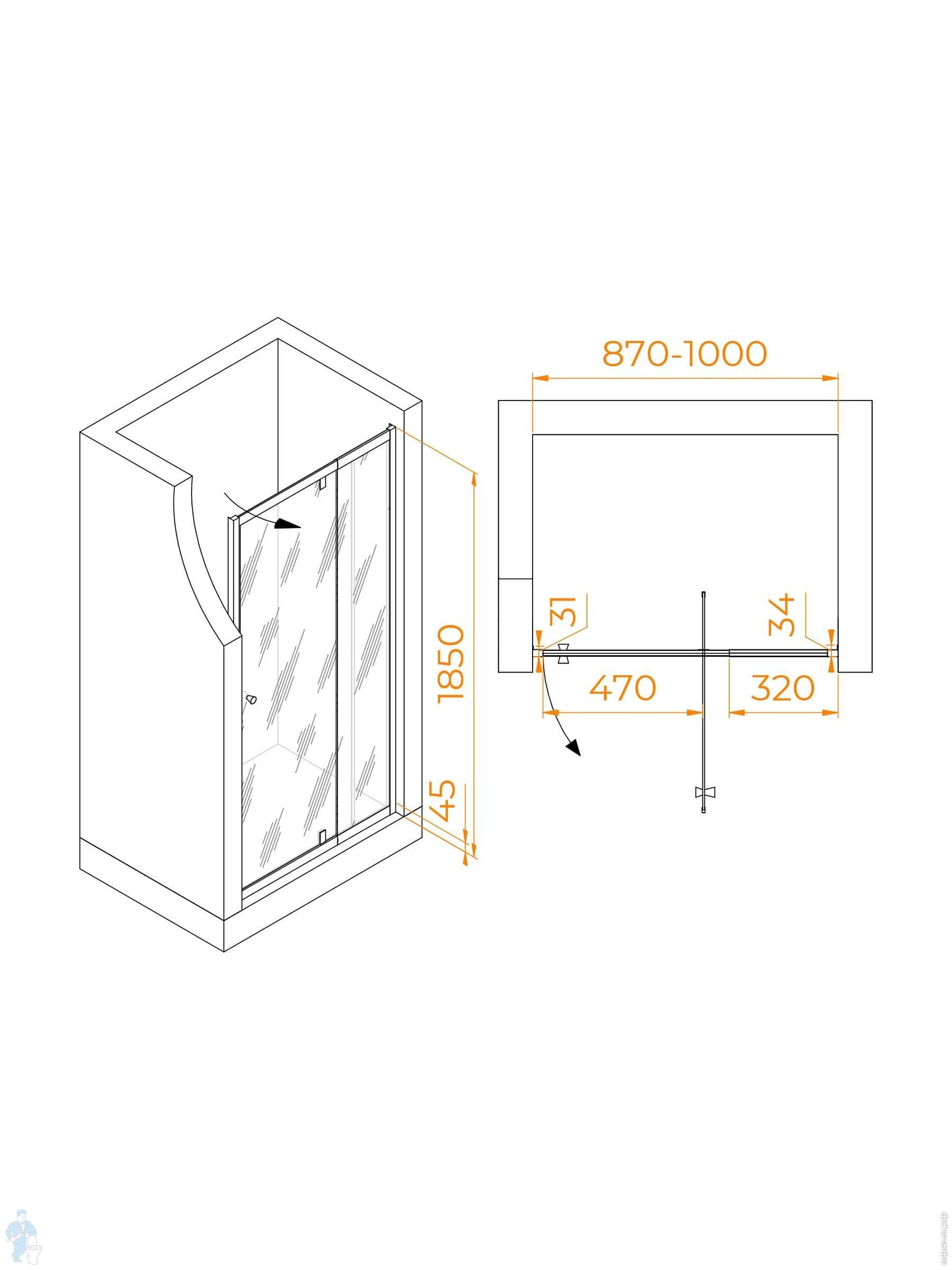 Душевая дверь RGW Passage PA-02B NEW (1000х1850) распашная, стекло 6мм прозрачное/черный 41080200-14Код: 351562