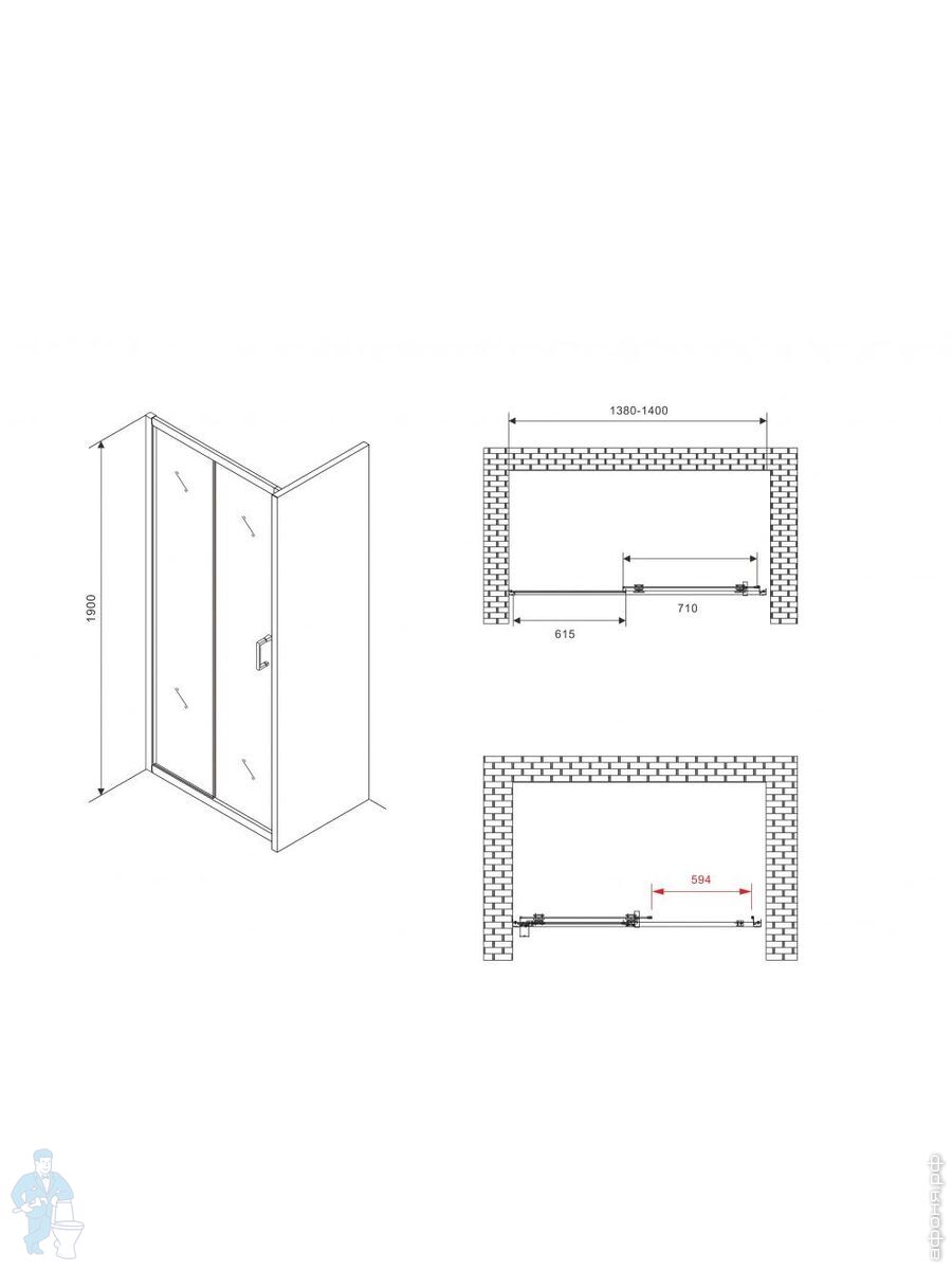 Душевая дверь ABBER Schwarzer Diamant AG30140BH (1400х1950) раздвижная, стекло 6мм прозрачное/черныйКод: 256580