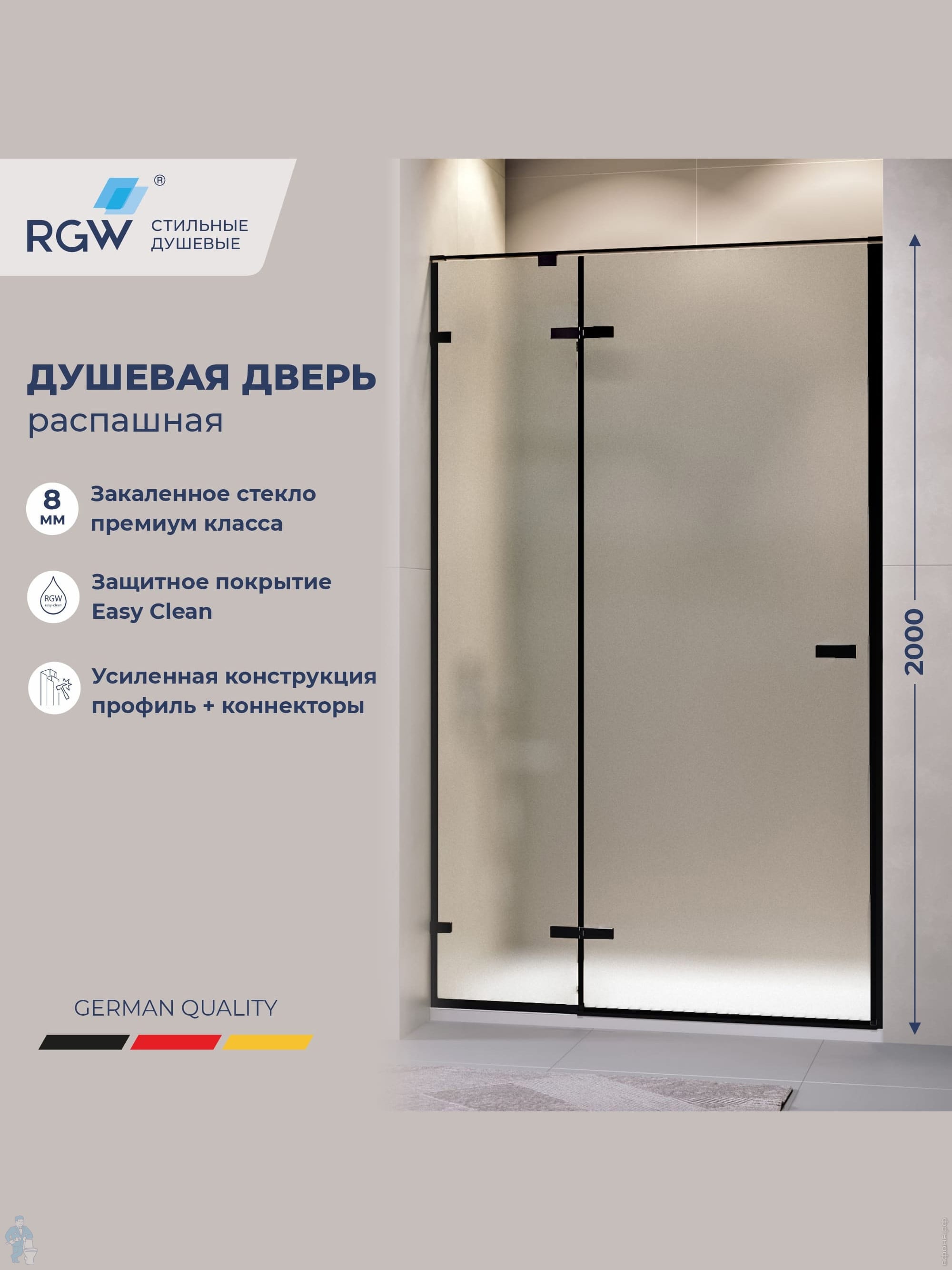 Душевая дверь RGW Stilvoll SV-004Gr (1500х2000) распашная, стекло 8мм прозрачное/серый 353200415-110Код: 330333