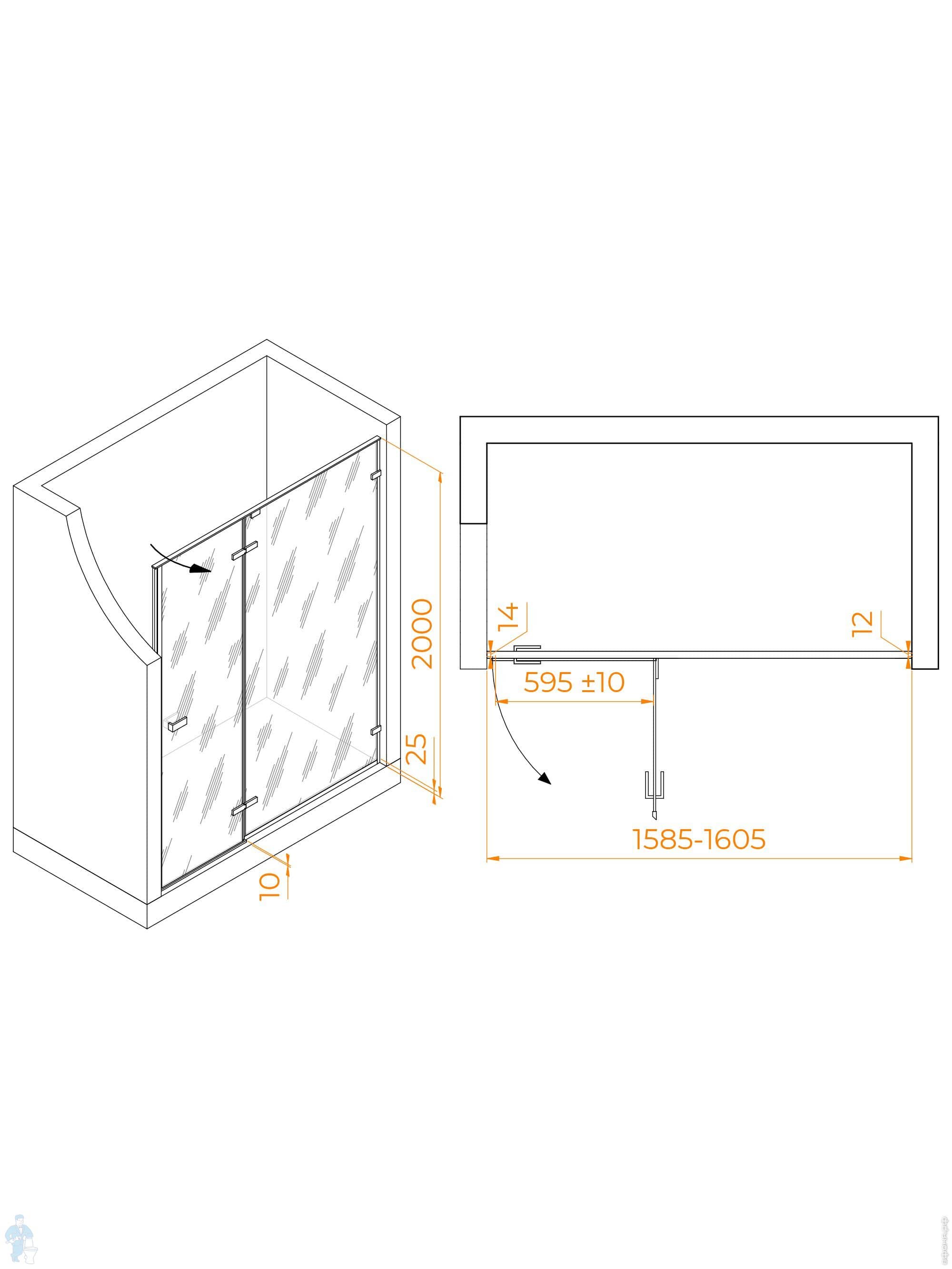 Душевая дверь RGW Stilvoll SV-004Gr (1600х2000) распашная, стекло 8мм прозрачное/серый 353200416-110Код: 330334