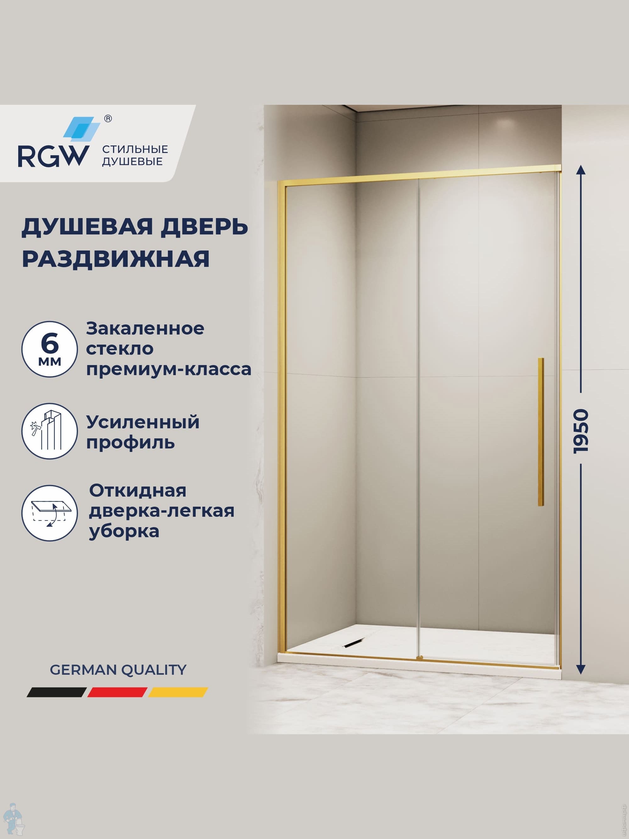 Душевая дверь RGW Stilvoll SV-12G (1500х1950) раздвижная, стекло 6мм прозр./золото браш. 32321215-16Код: 345243