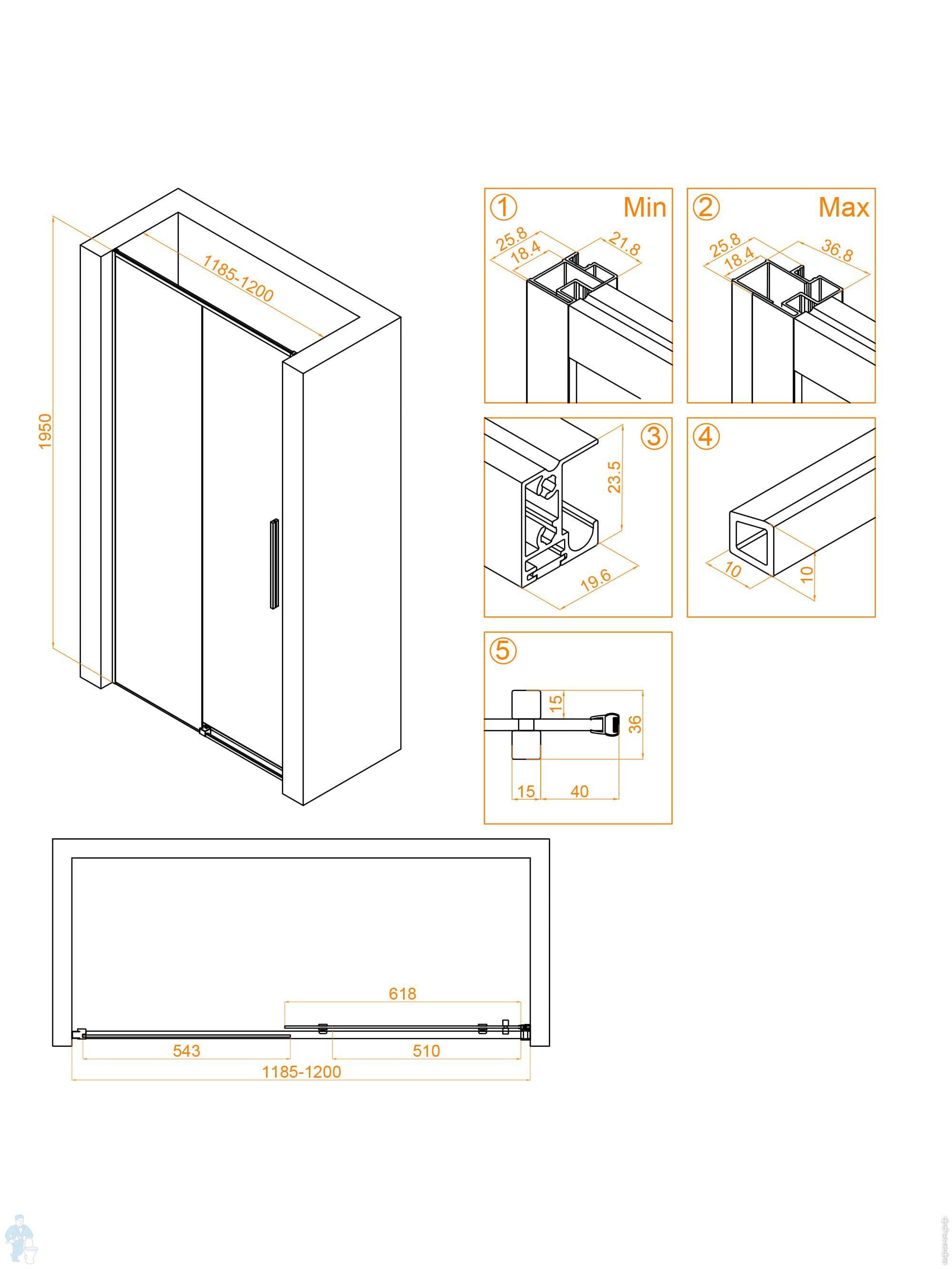 Душевая дверь RGW Stilvoll SV-12G (1200х1950) раздвижная, стекло 6мм прозр./золото браш. 32321212-16Код: 360416