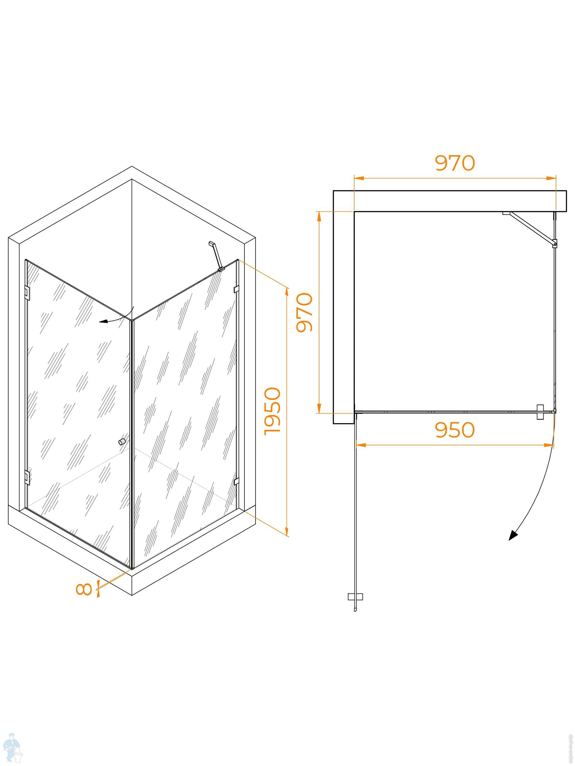 Душевой уголок RGW Hotel HO-084B (1000х1000х1950) трапеция, ст. 8мм тонированное/черный 350608400-34Код: 252851