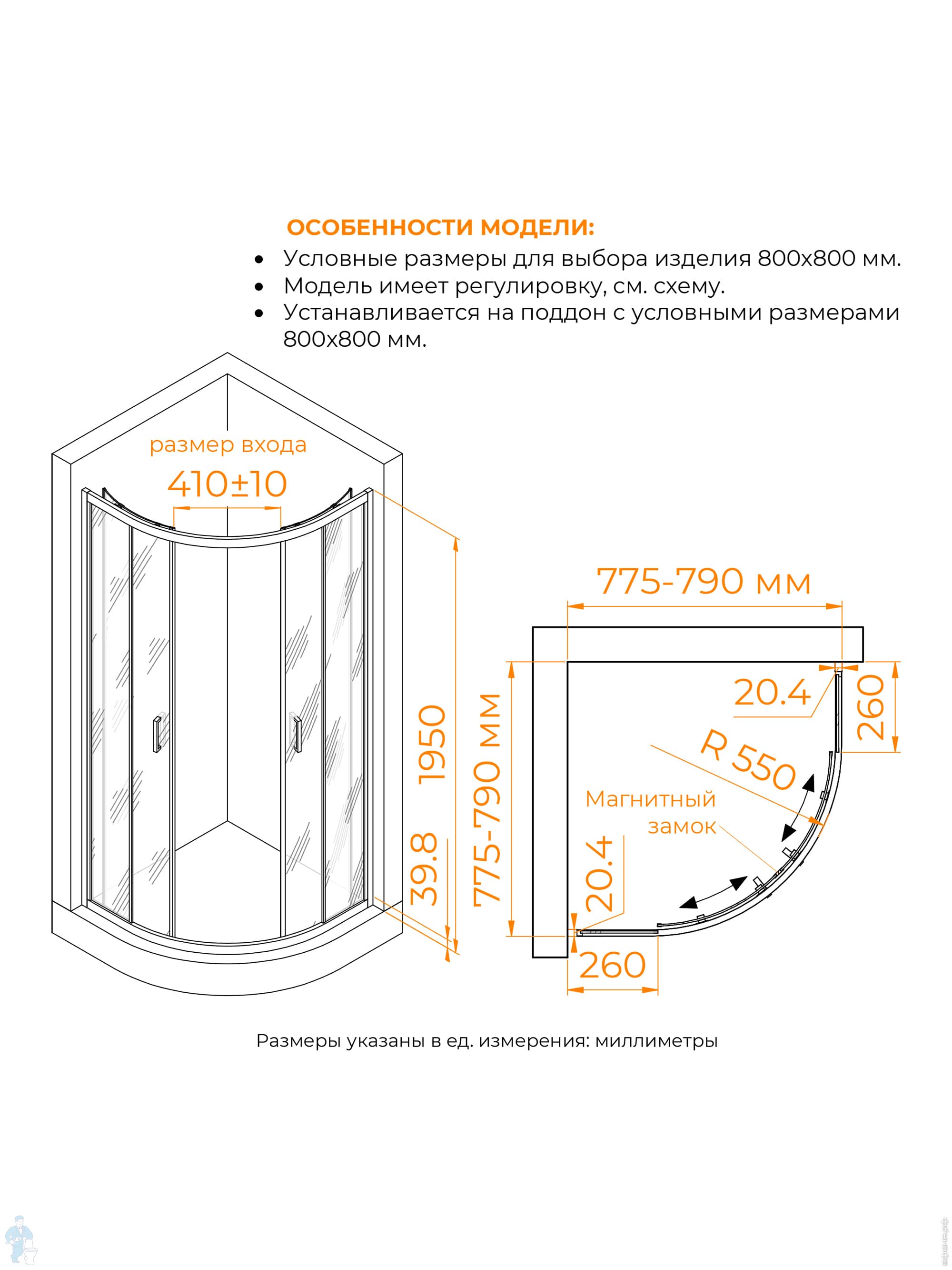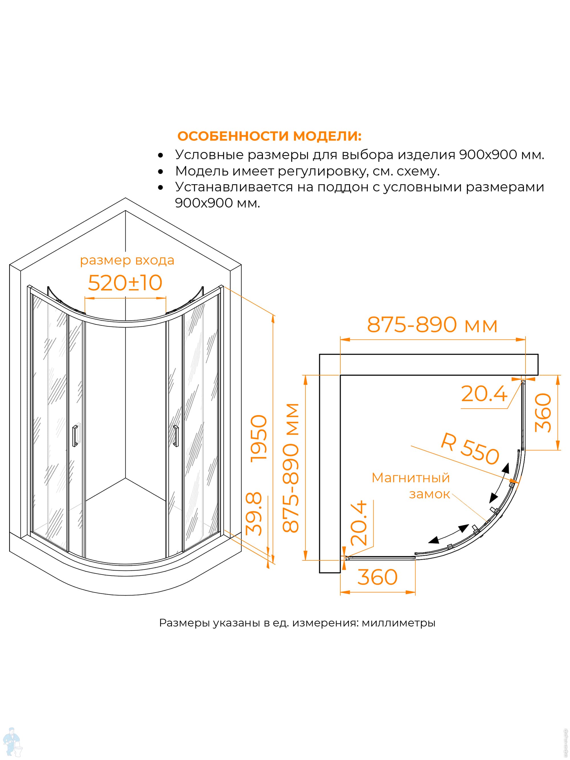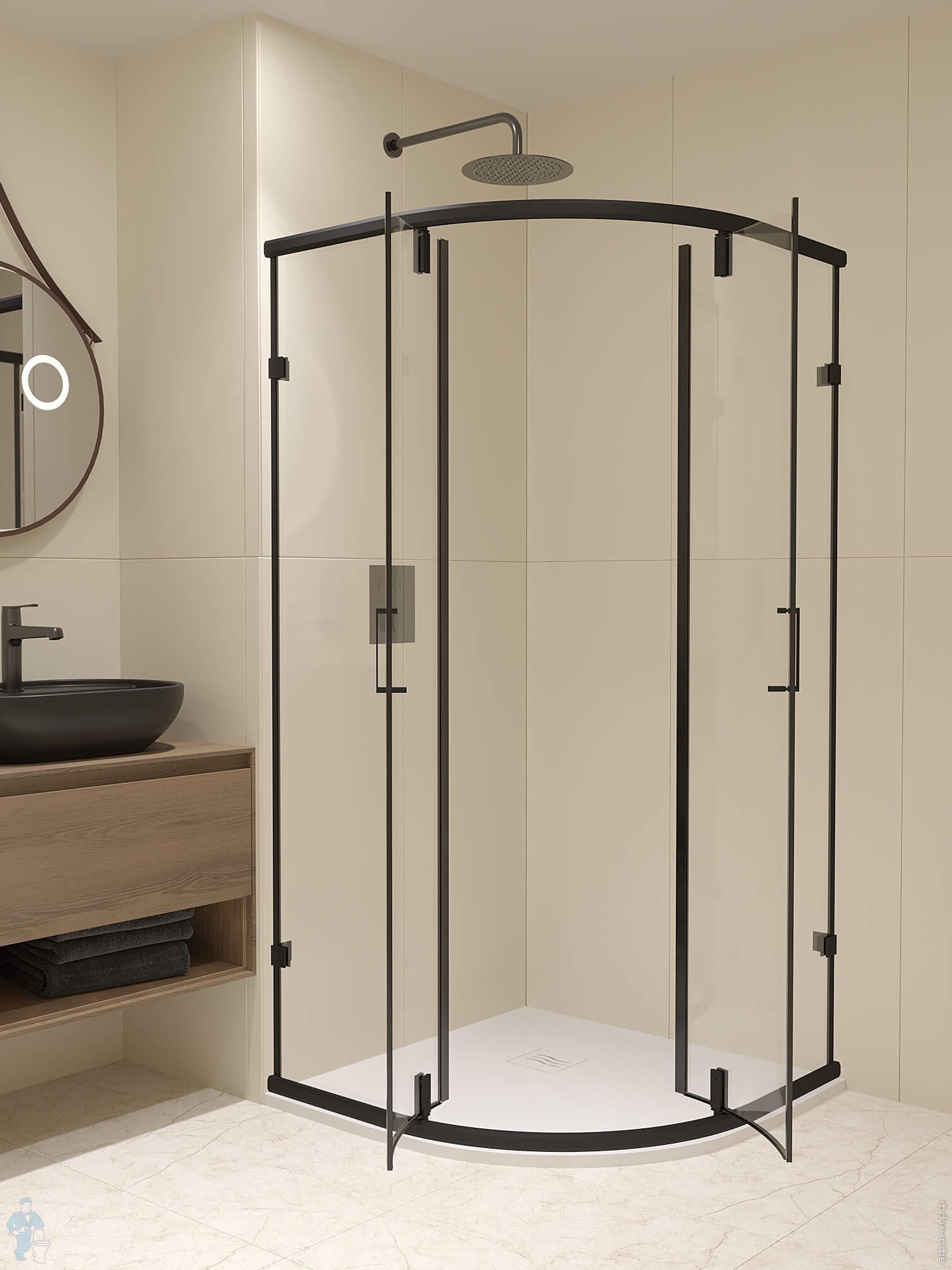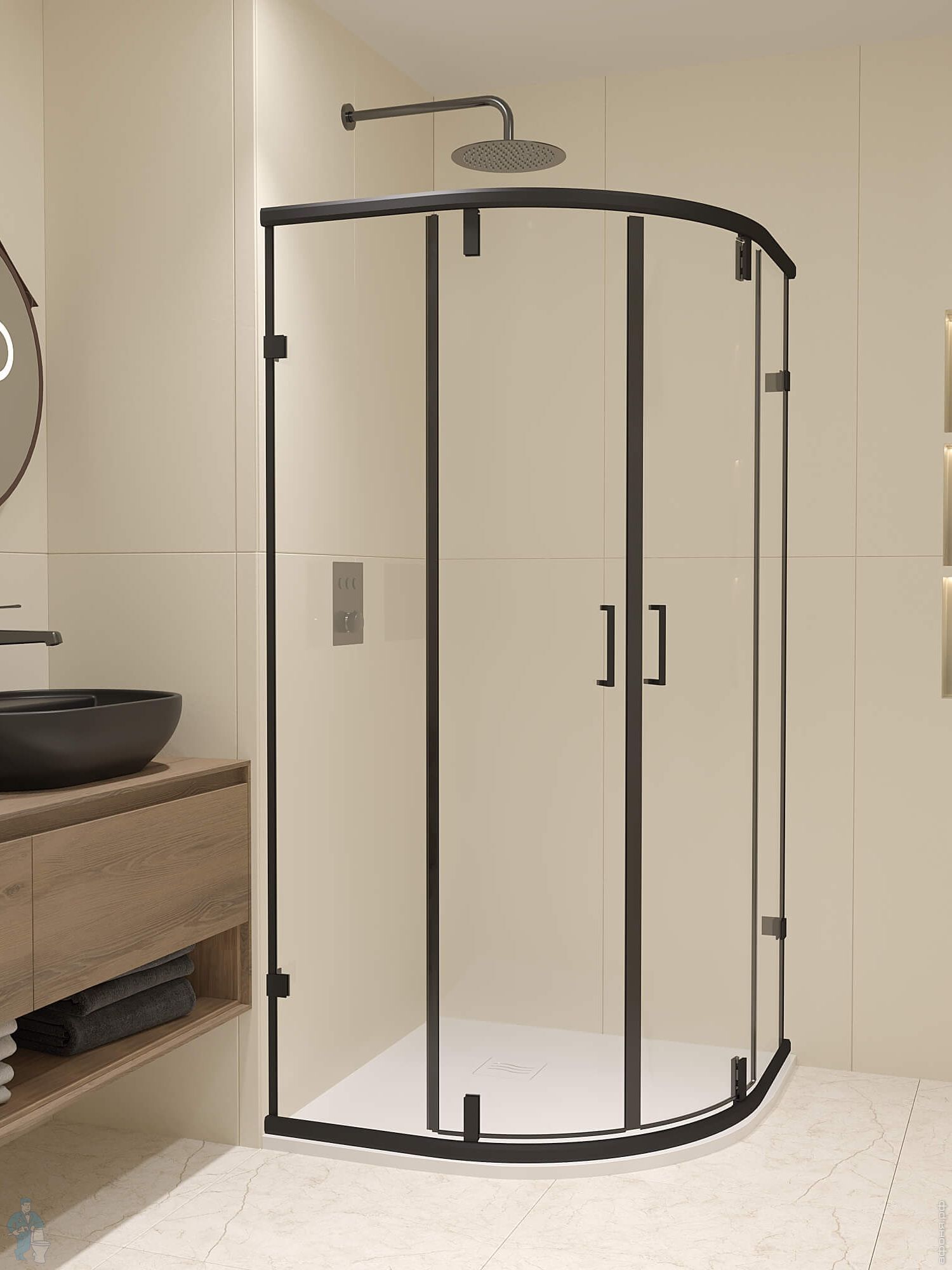 Душевой уголок RGW Classic CL-55B (885х885х1850), полукруг, стекло 6мм прозрачное/черный 72095599-14Код: 342683