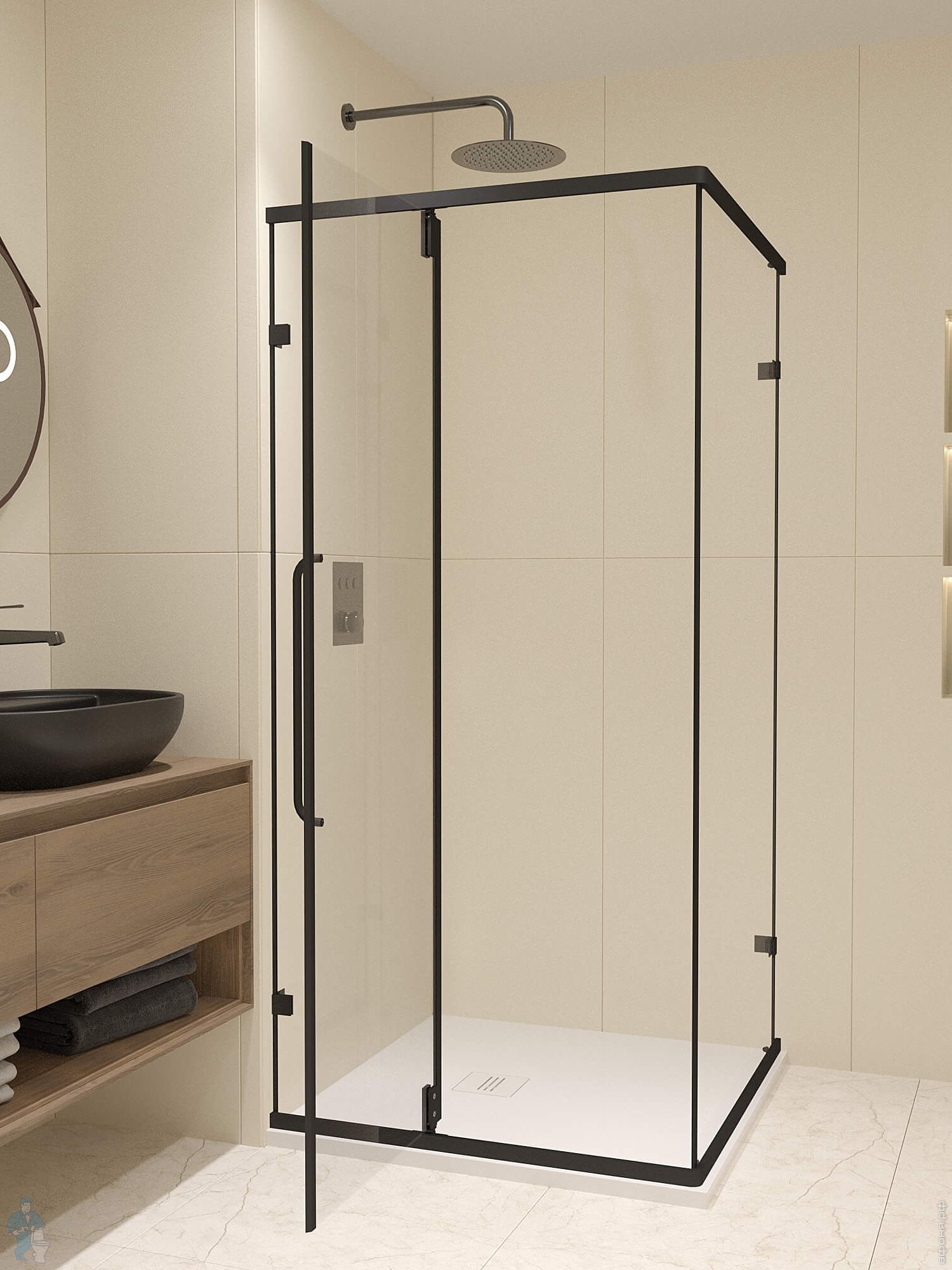 Душевой уголок RGW Classic CL-34B (1000х1000х1850) квадрат, стекло 5мм прозрачное/черный 32093400-14Код: 252764
