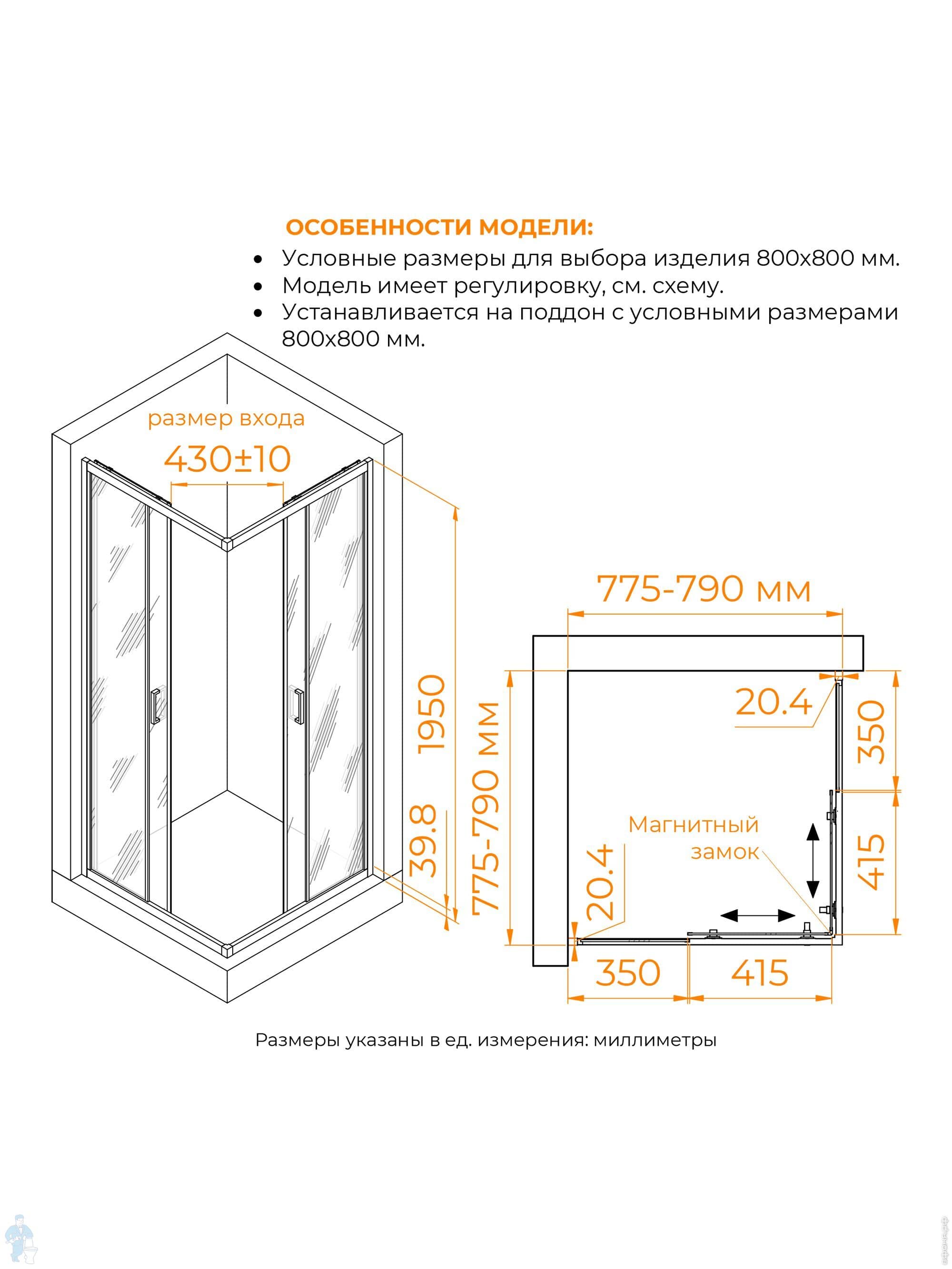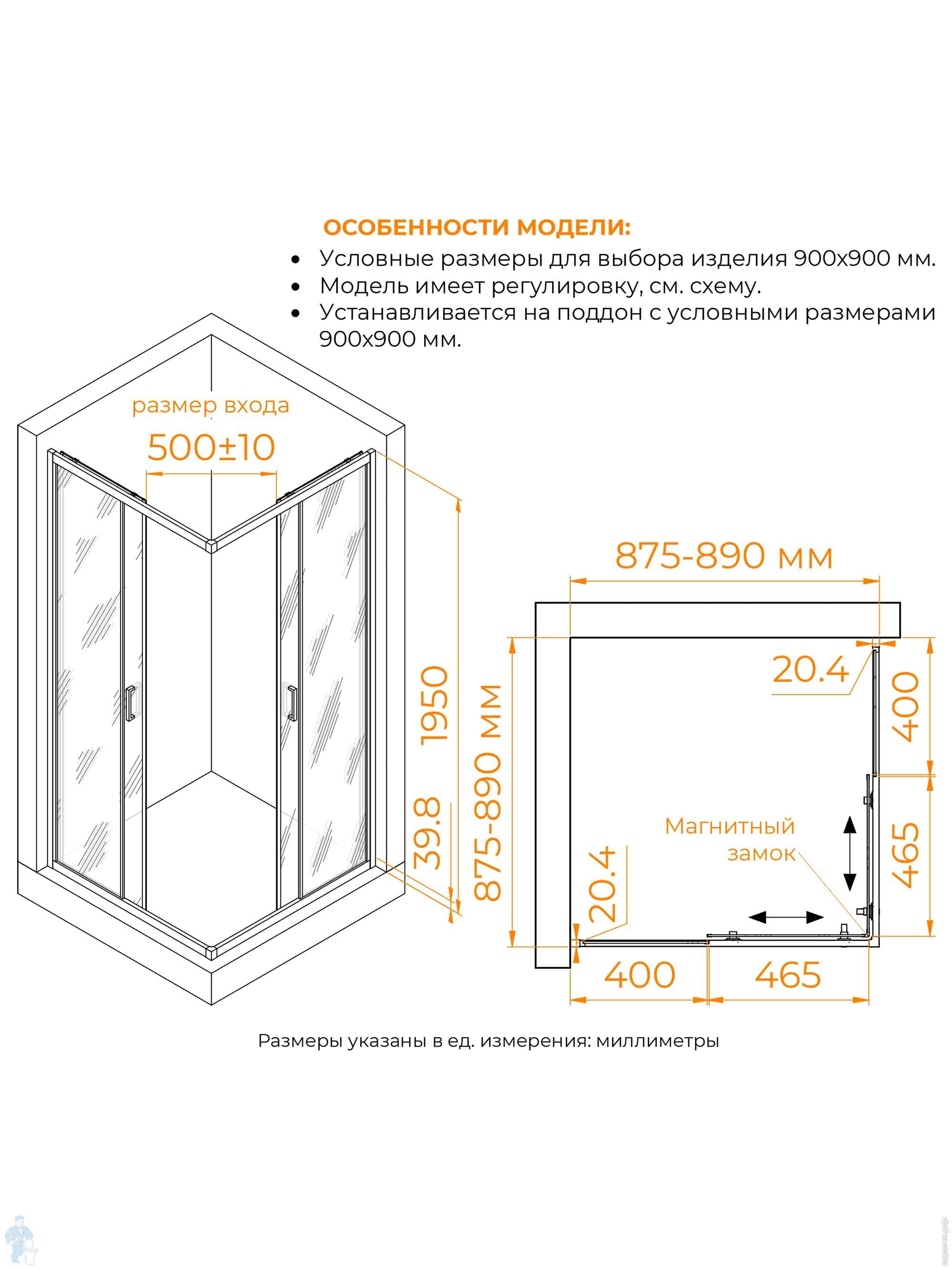 Душевой уголок RGW Classic CL-035B (900х900х1850) квадрат, стекло 6мм прозрачное/черный 350903599-14Код: 366097