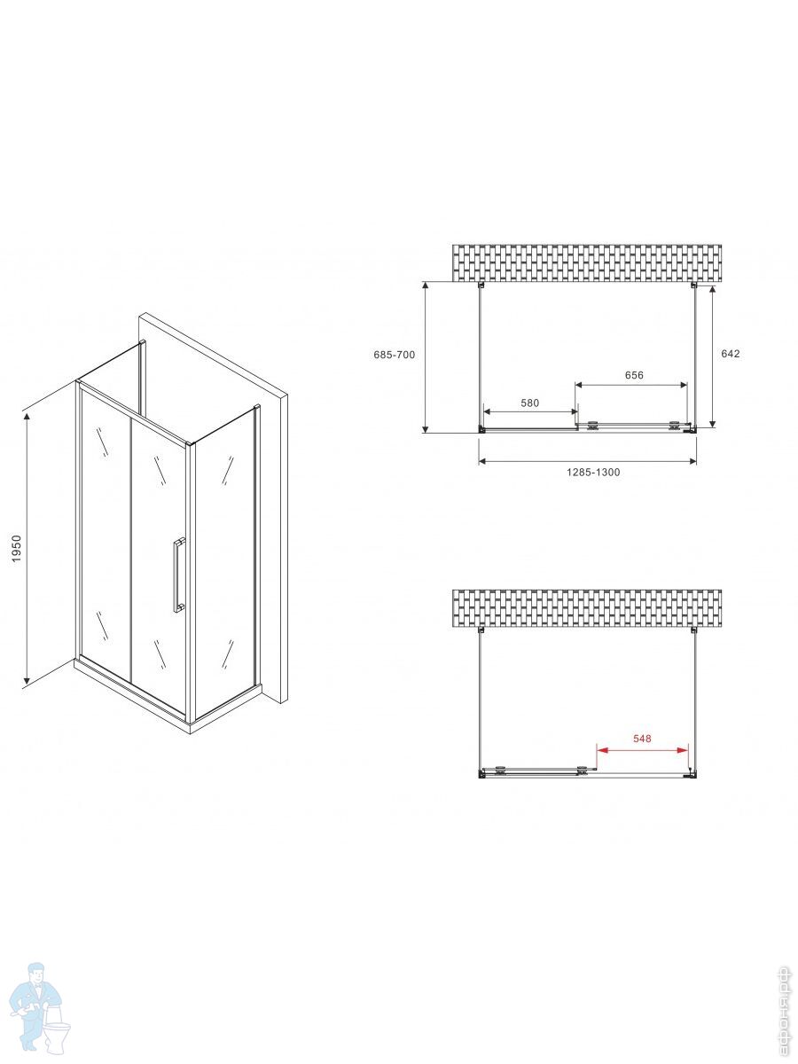 Душевое ограждение ABBER Schwarzer Diamant AG30130BH-S80B-S80B (1300х800х1950) П-обр., прозр./черныйКод: 301178