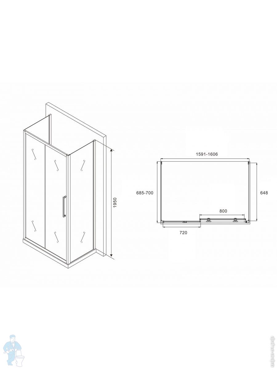 Душевое ограждение ABBER Schwarzer Diamant AG30160BH-S80B-S80B (1600х800х1950) П-обр., прозр./черныйКод: 301593