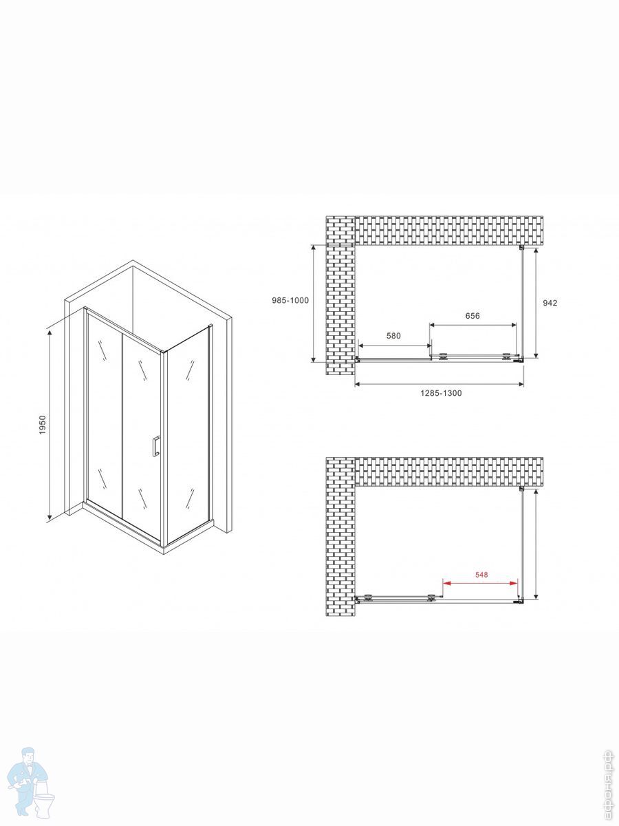 Душевые уголки 130см