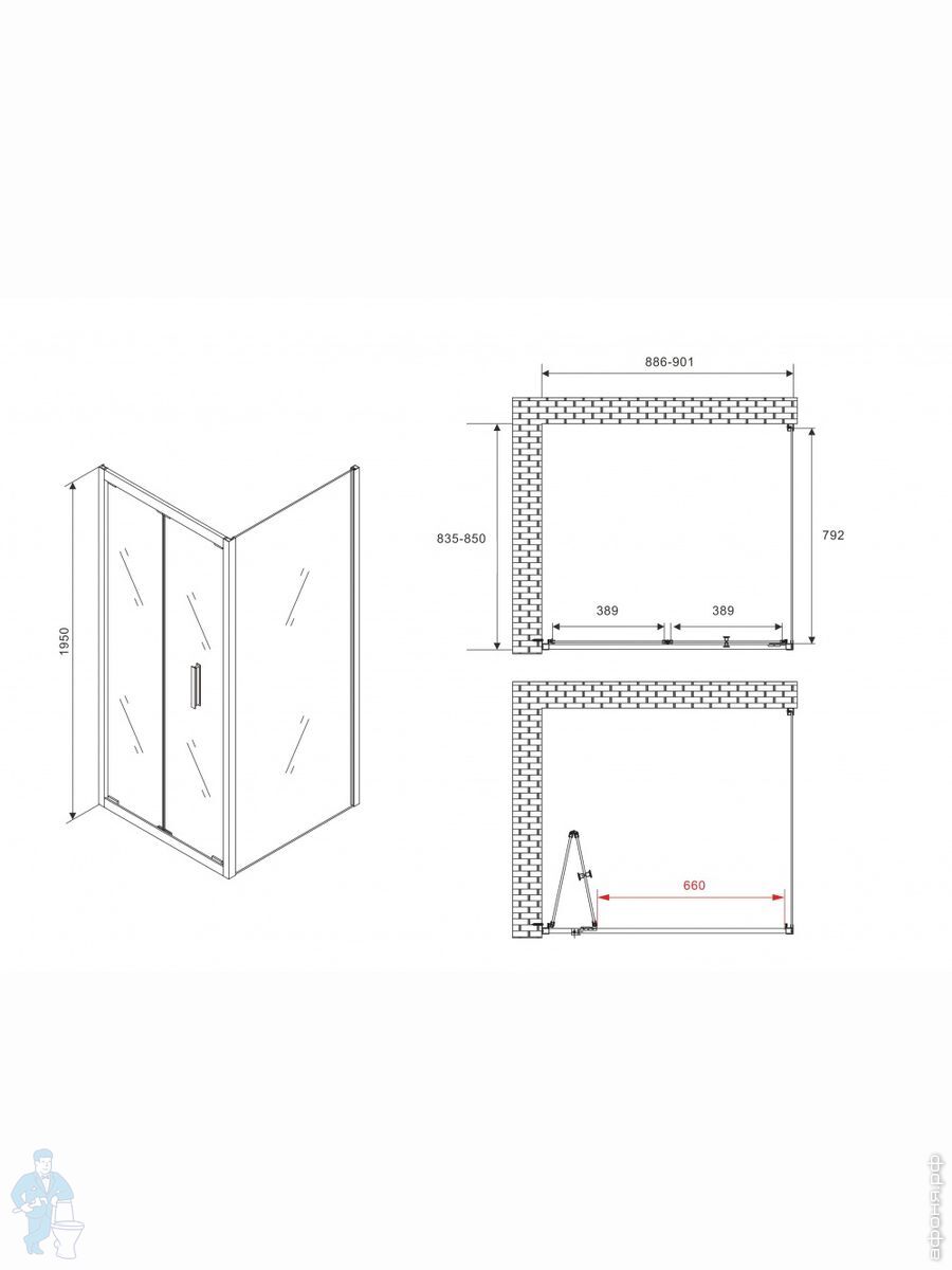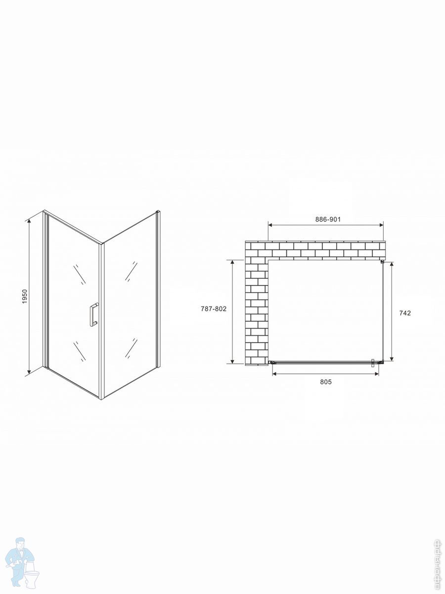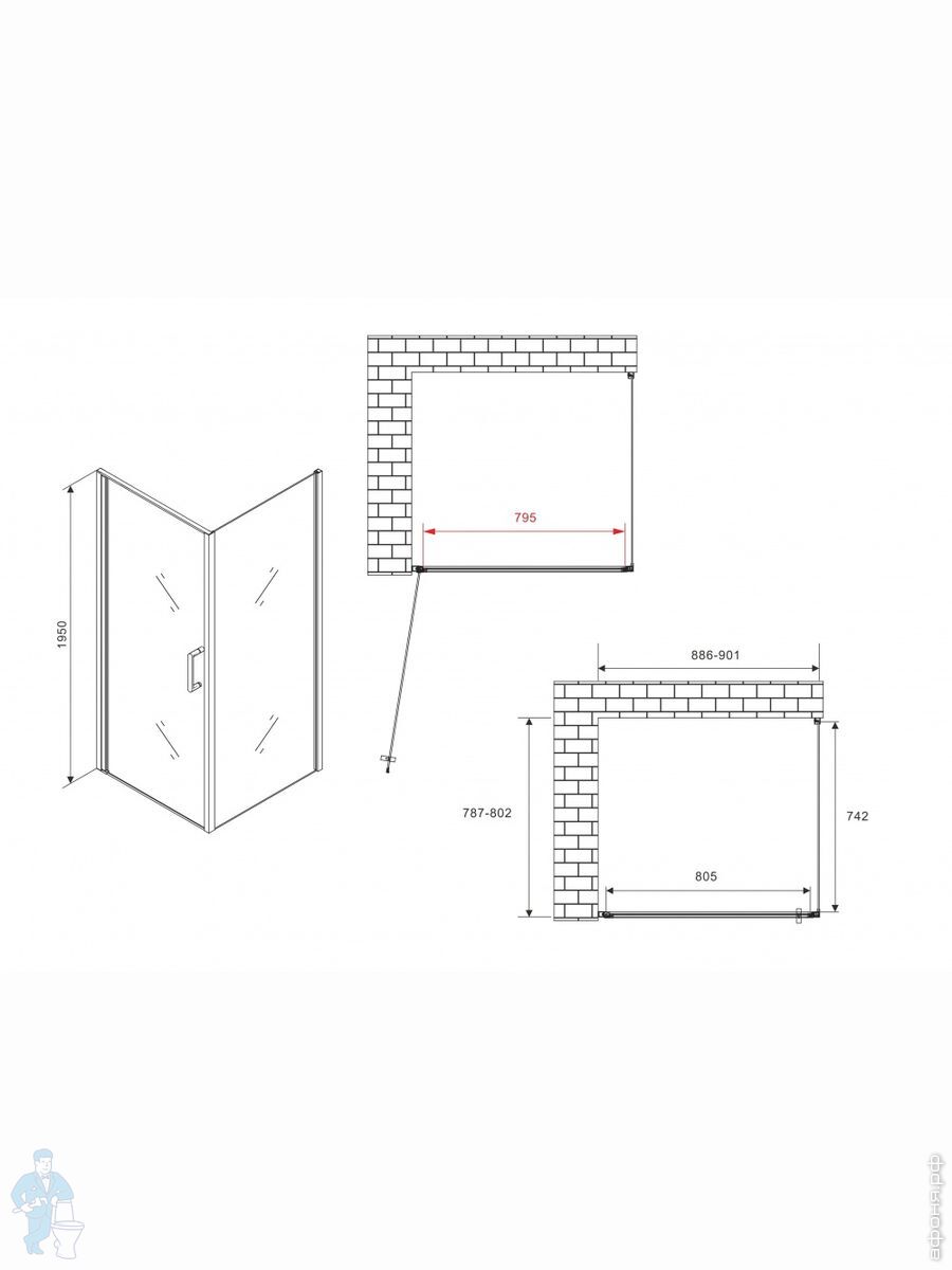 Душевые уголки 90см