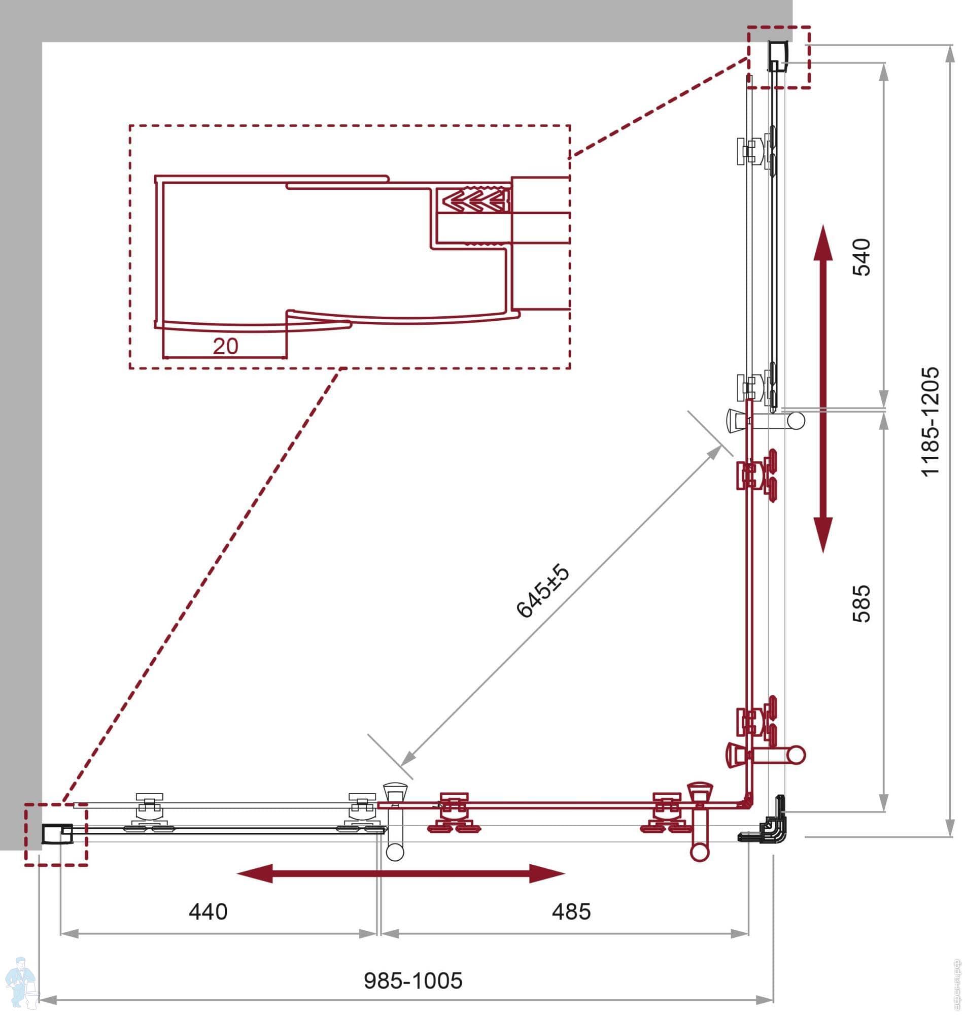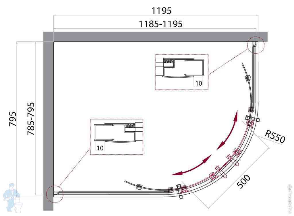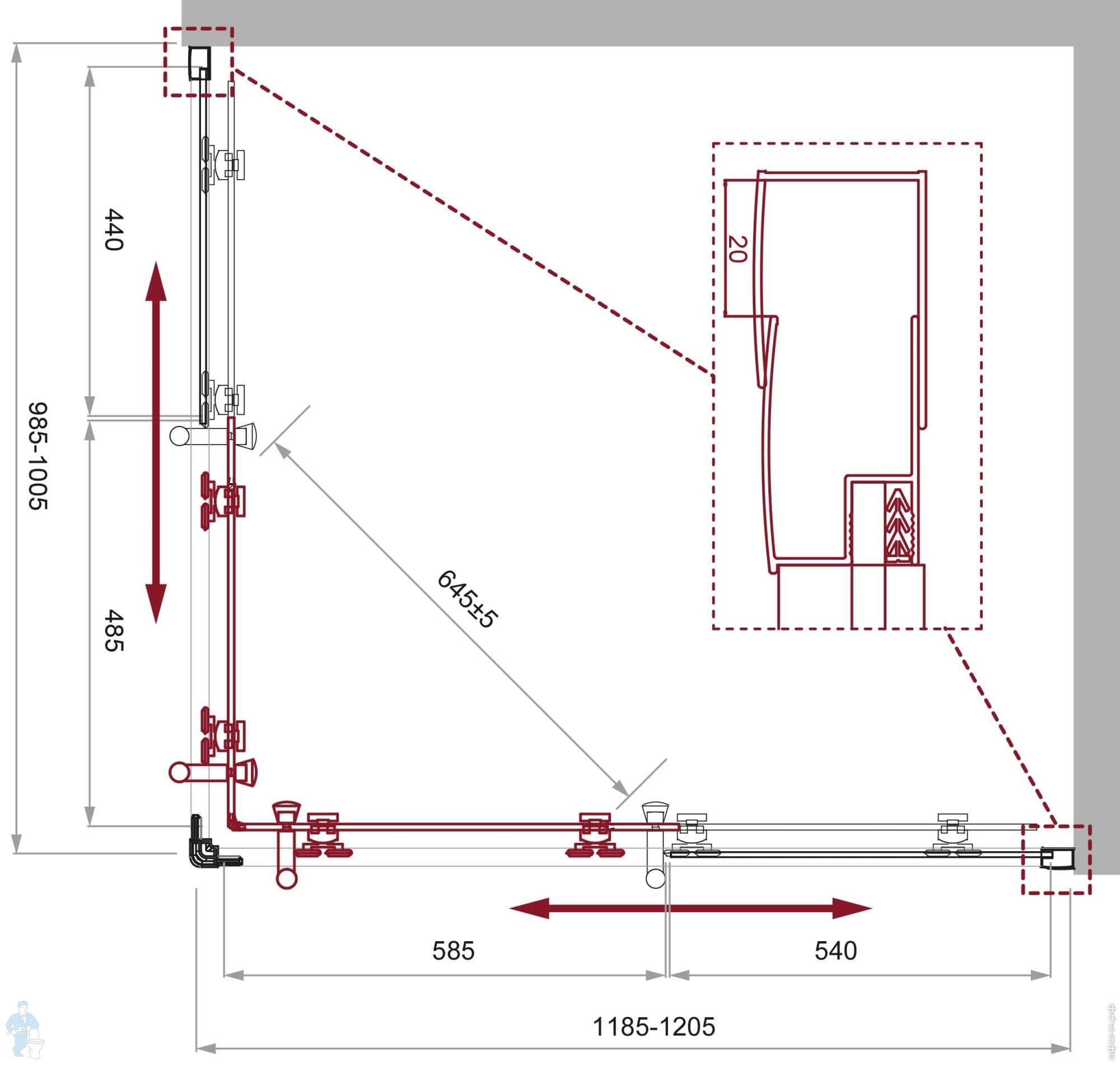 Душевой уголок BelBagno Uno (1200х900х1950) UNO-195-RH-2-120/90-C-Cr асимметр,стекло прозр/проф.хромКод: 241768