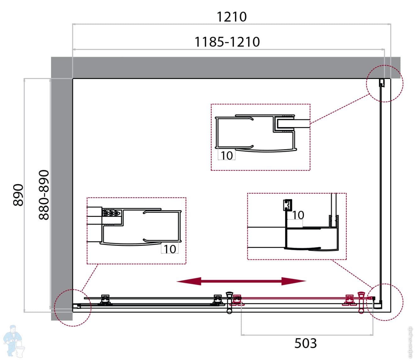 Душевой уголок BelBagno Uno (1200х900х1850) UNO-AH-1-120/90-P-Cr прямоугольный, стекло текстурн/хромКод: 241256