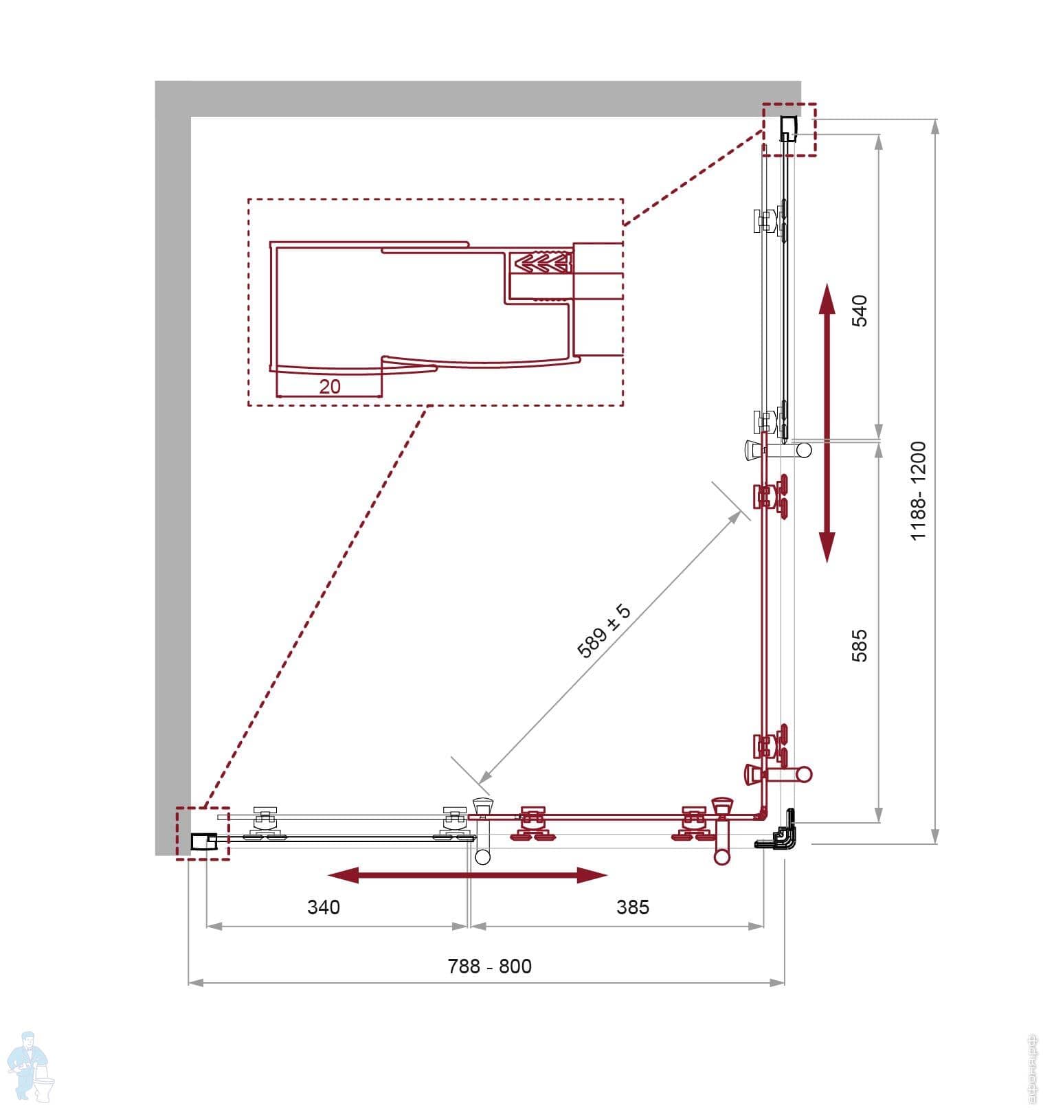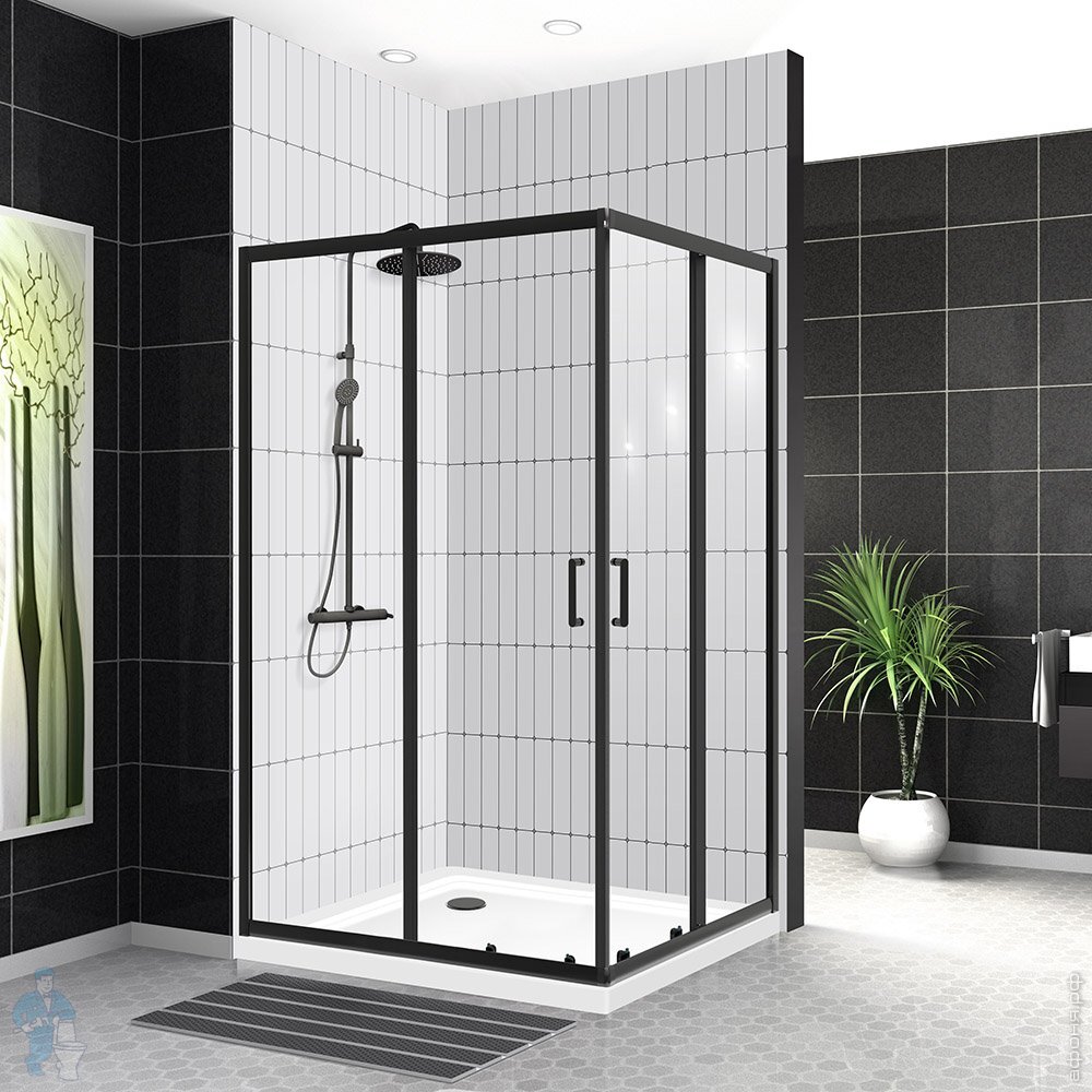 Душевой уголок BelBagno Uno (1200х800х1950) UNO-195-AH-1-120/80-C-NERO стекло прозр./проф. черн. матКод: 303061