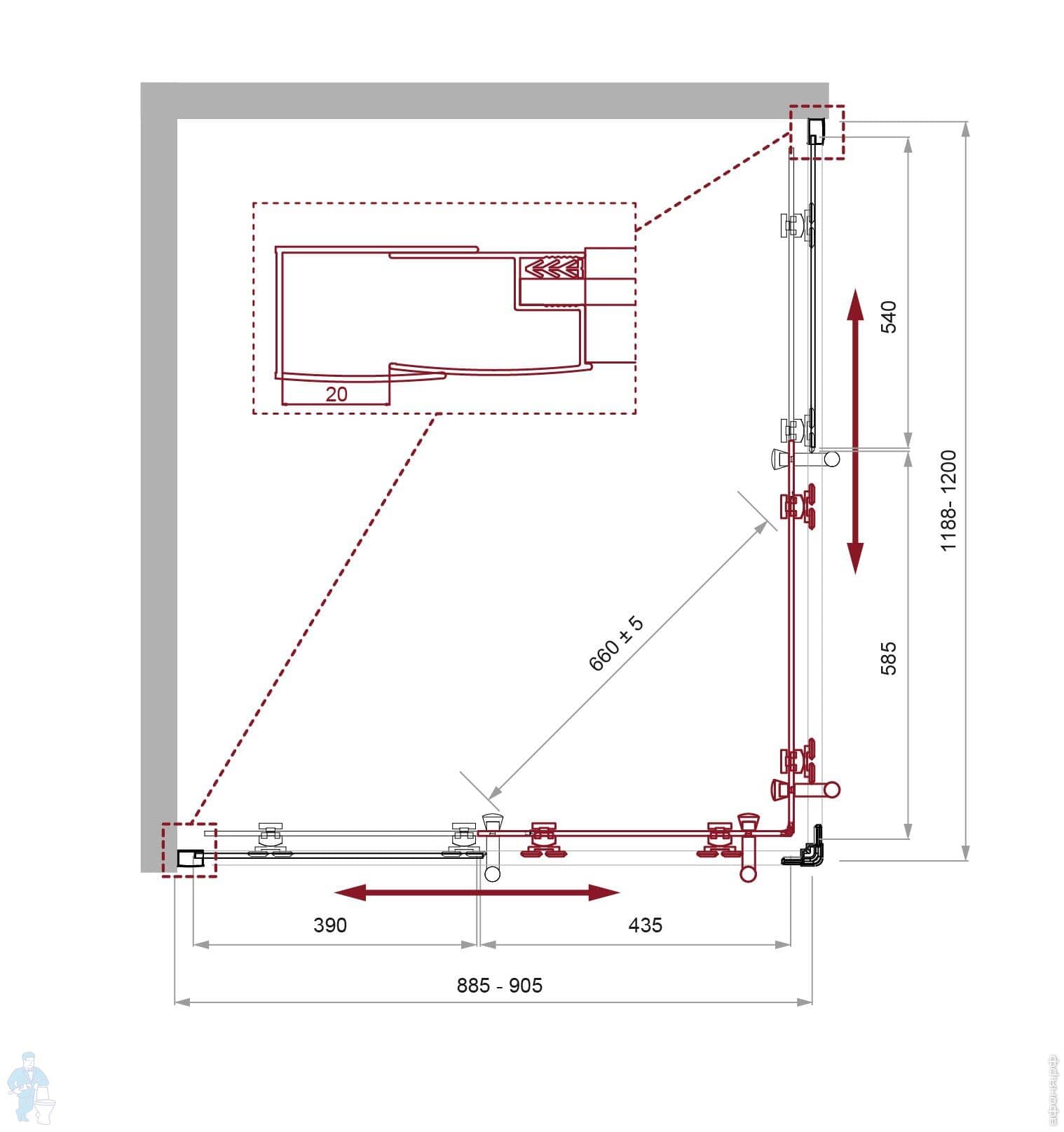 Душевой уголок BelBagno Uno (1200х900х1950) UNO-195-PH-2-120/90-C-Cr асимметр,стекло прозр/проф.хромКод: 241766