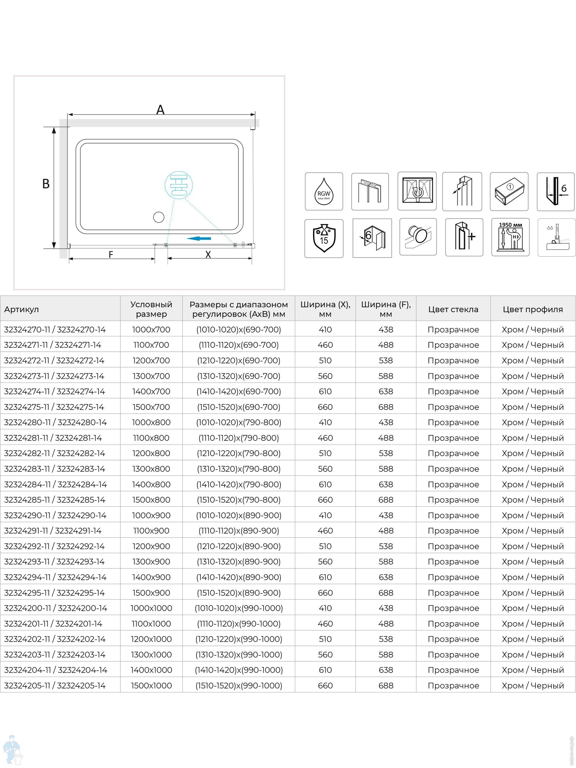 Душевой уголок RGW Stilvoll SV-42 (1100х1000х1950) прямоуг., стекло 6мм прозрачное/хром 32324210-011Код: 252653