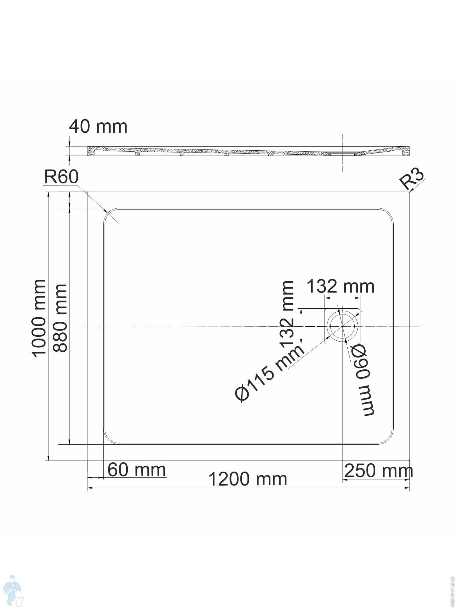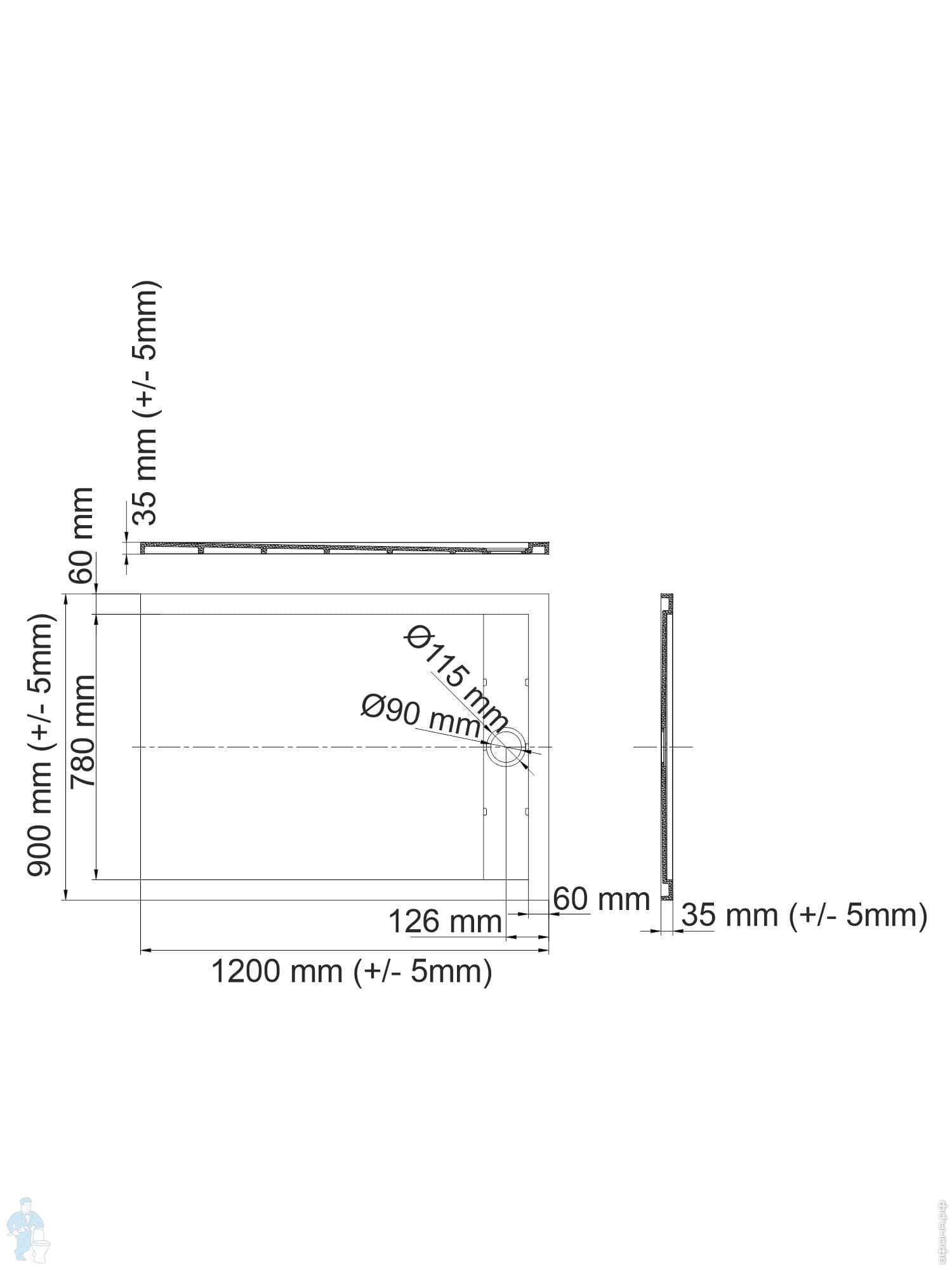 Душевой поддон WasserKRAFT Wiese 1200х900х40 прямоугольн., искусственный камень, серый матовый 84T07Код: 235298
