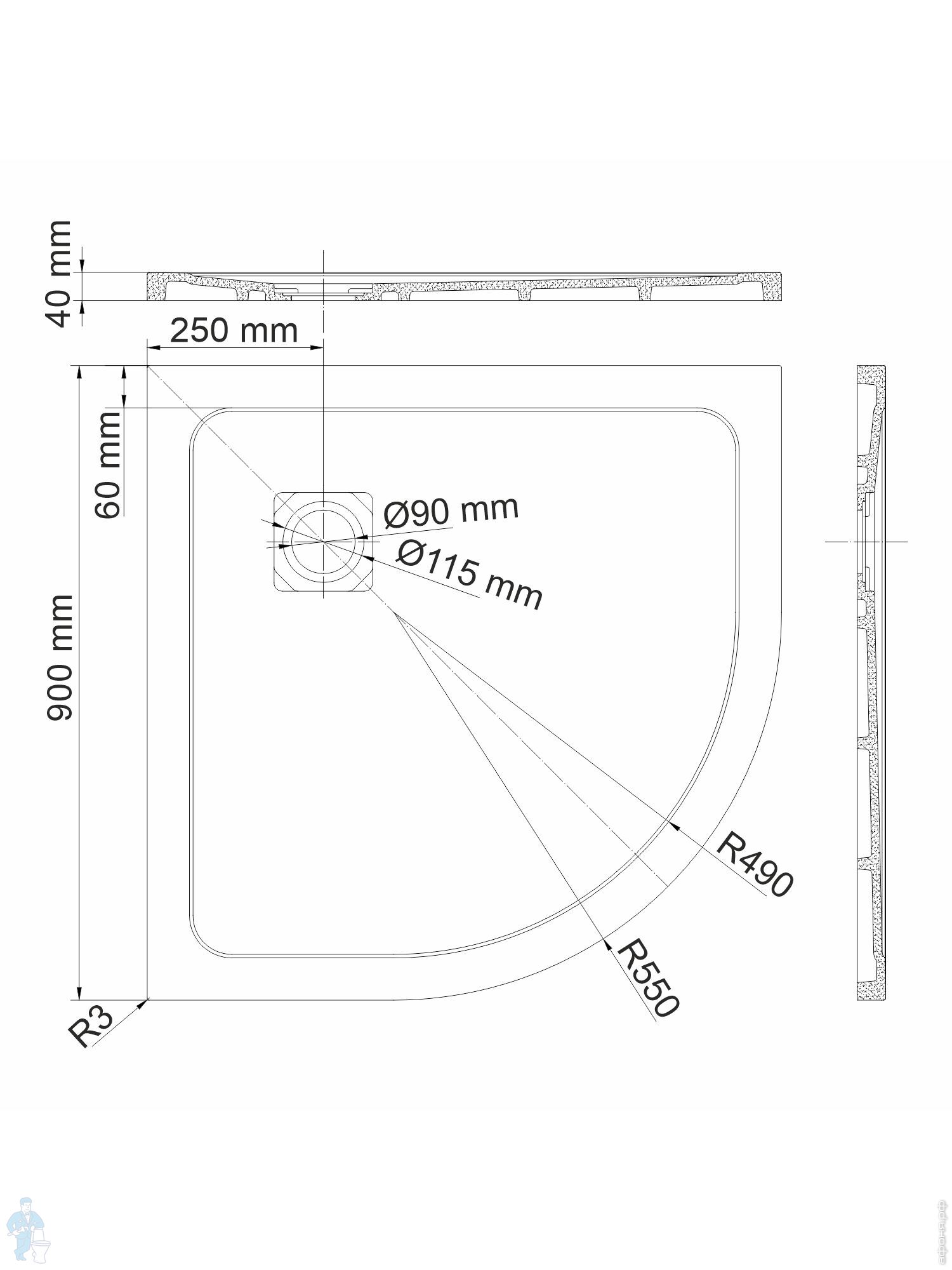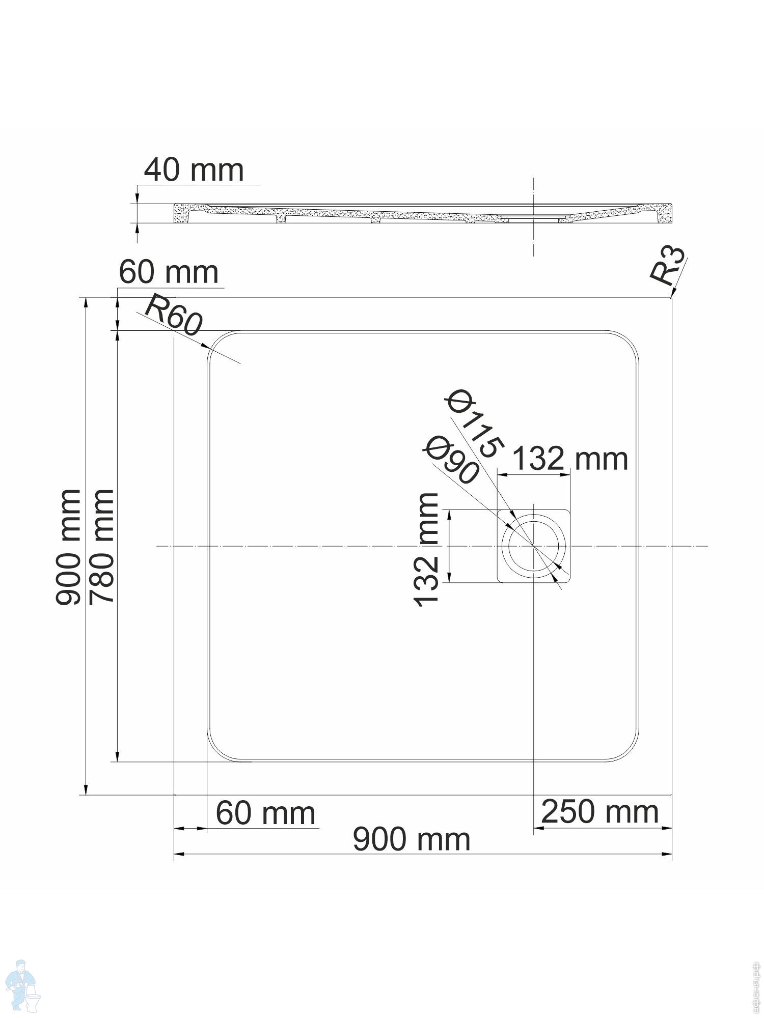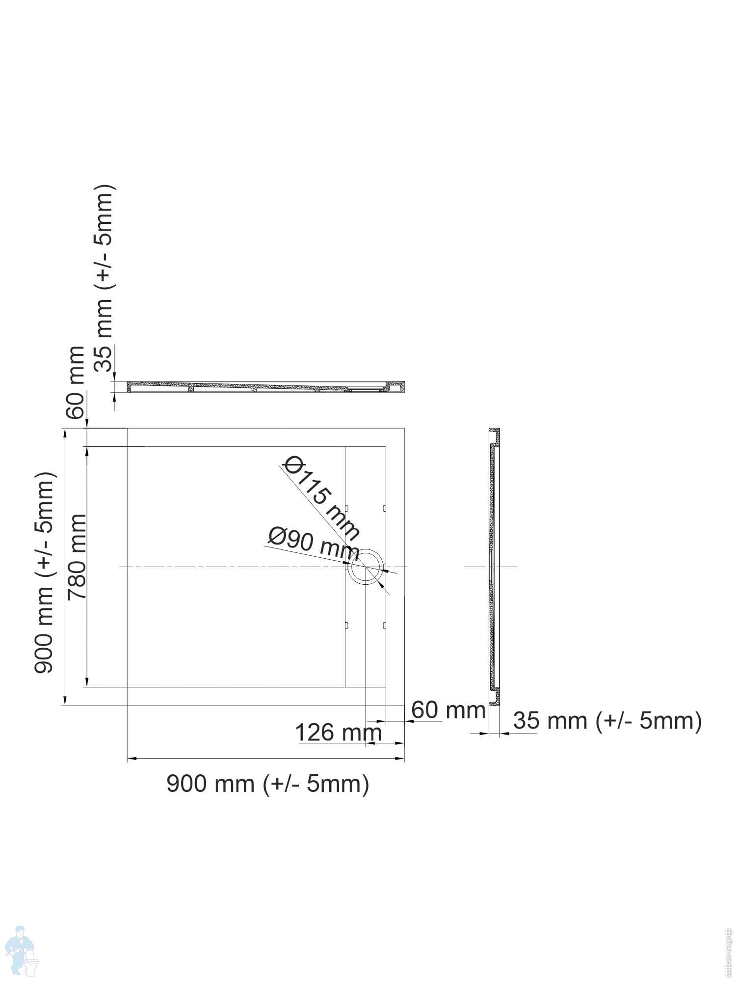 Душевой поддон WasserKRAFT Elbe 1000х1000х26 квадратный, стеклопластик, сифон,заглушка, черный 74T19Код: 209273