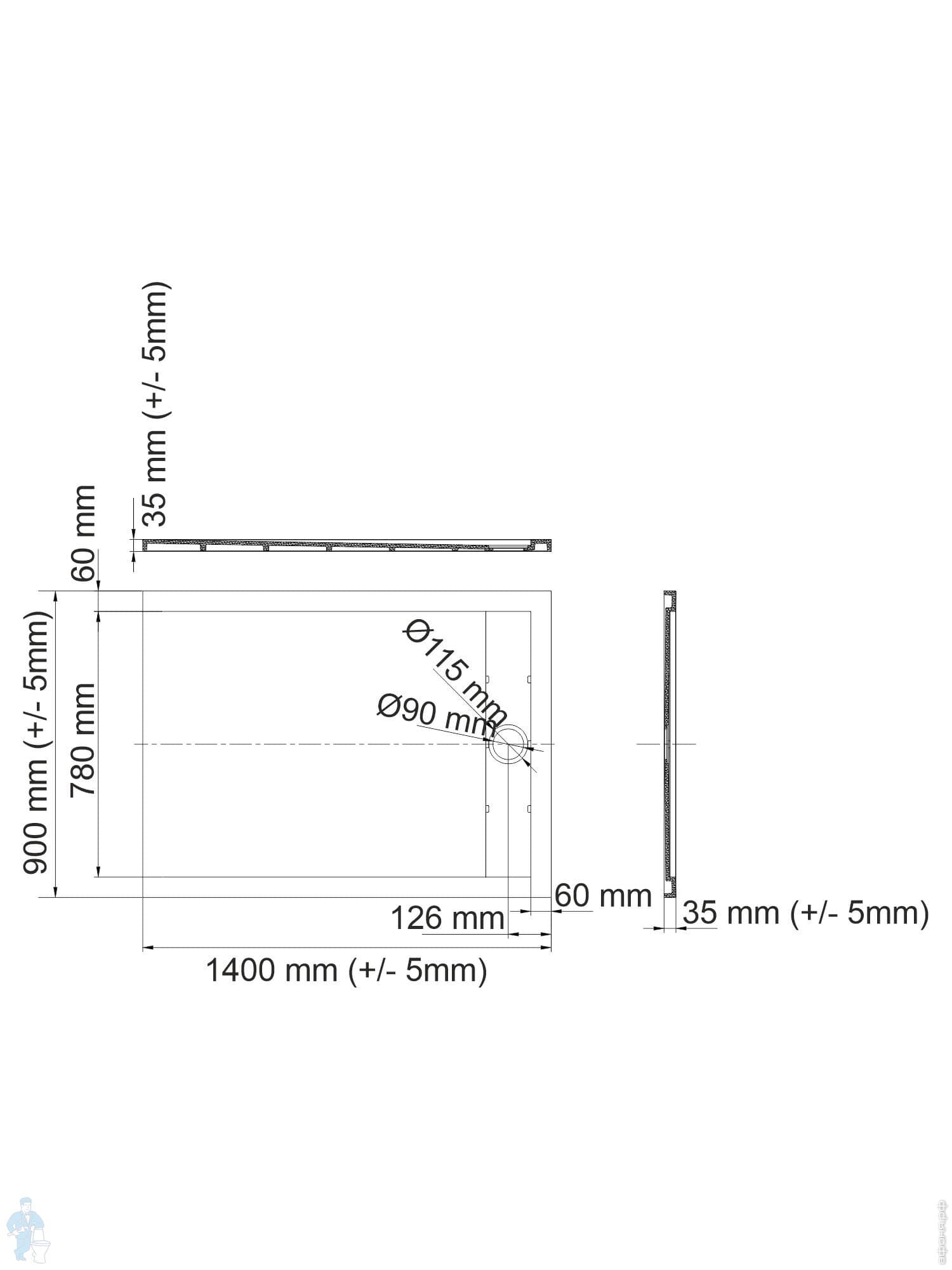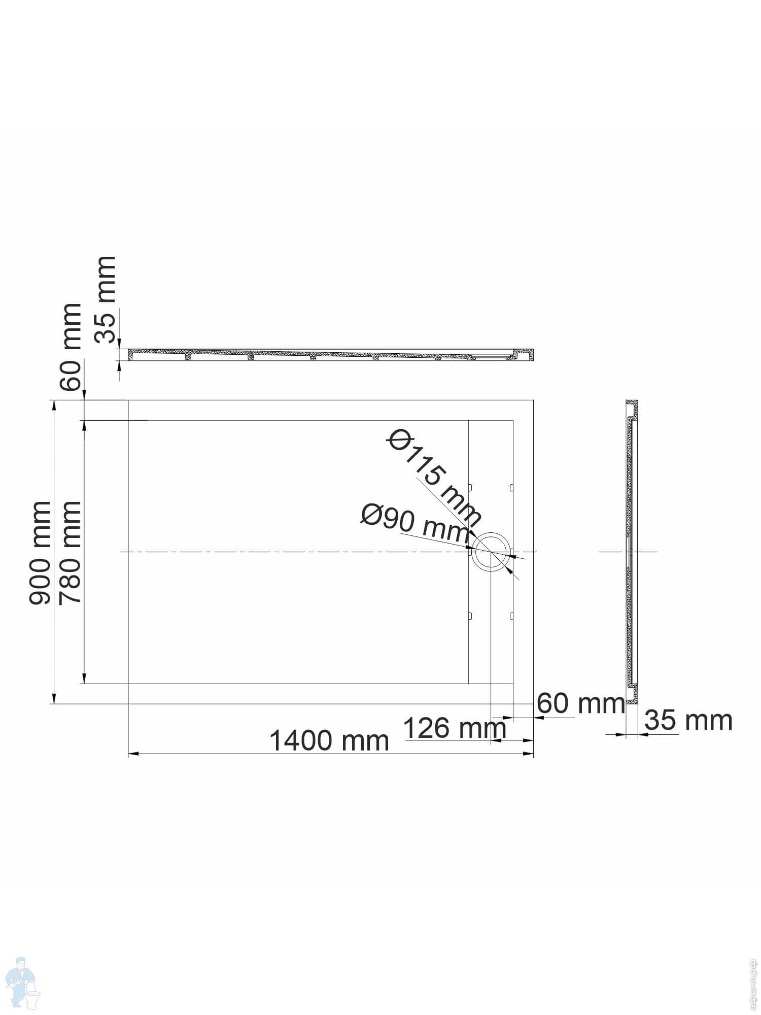 Душевой поддон WasserKRAFT Wiese 1400х900х40 прямоугольн., искусственный камень, серый матовый 84T36Код: 236900
