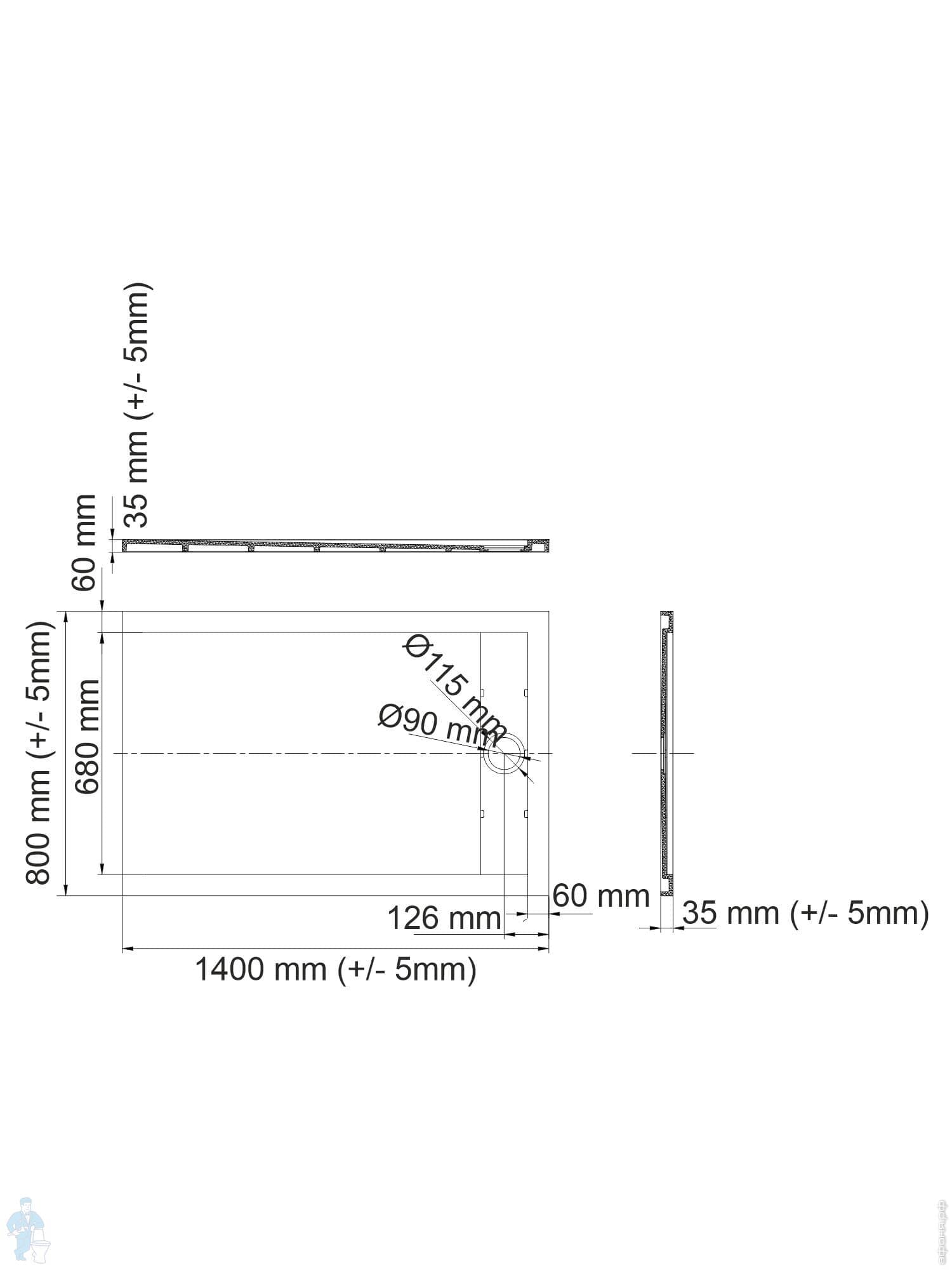 Душевой поддон WasserKRAFT Wiese 1400х800х40 прямоугольн., искусственный камень, серый матовый 84T35Код: 235299
