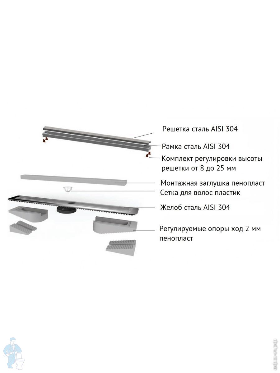 Лоток душевой WIRQUIN VENISIO SLIM 700 с сухим затвором 700х40мм, сифон, решетка нерж.сталь 30724166Код: 263704