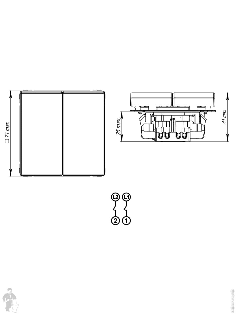Выключатель Systeme Electric ARTGALLERY 2-клавишный, кнопочный, сх.2, 10А, механизм,белый, GAL000117Код: 338082