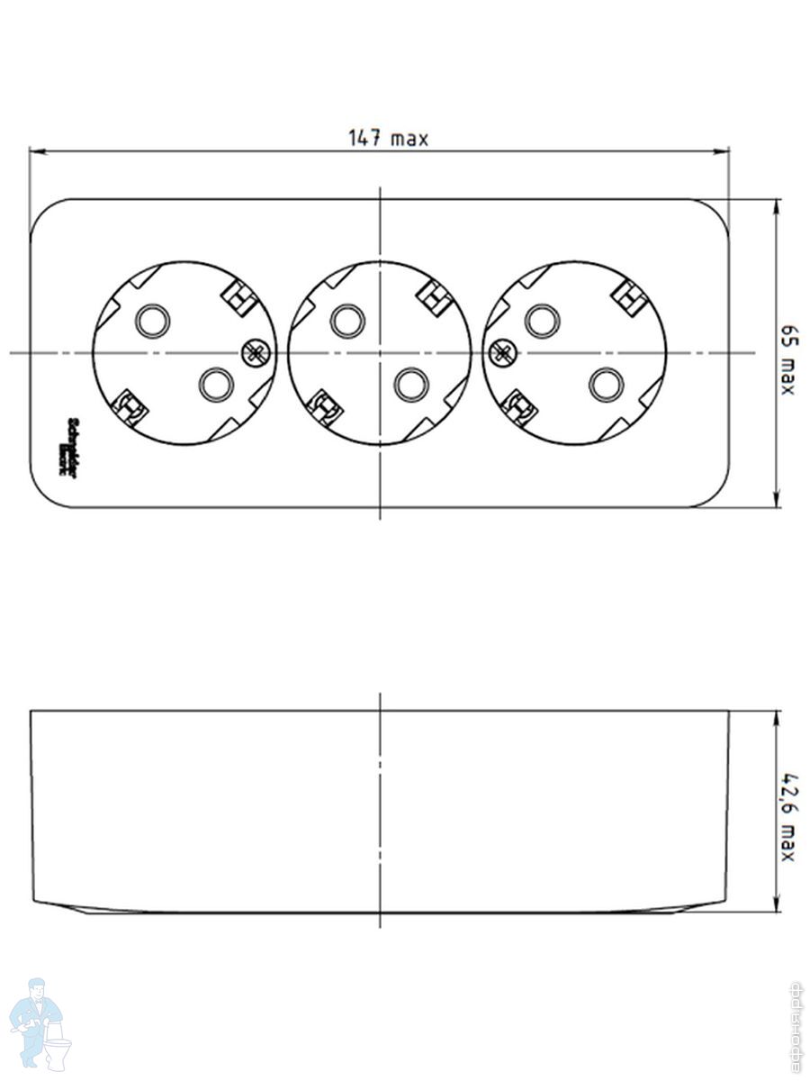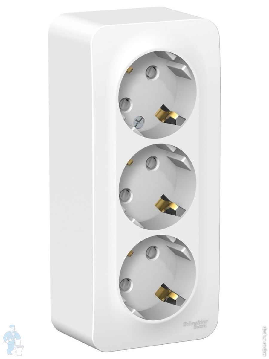 Розетка Systeme Electric BLANCA трехпостовая, с заземлением, со шторками, 16А 250В белый BLNRA011311Код: 281379