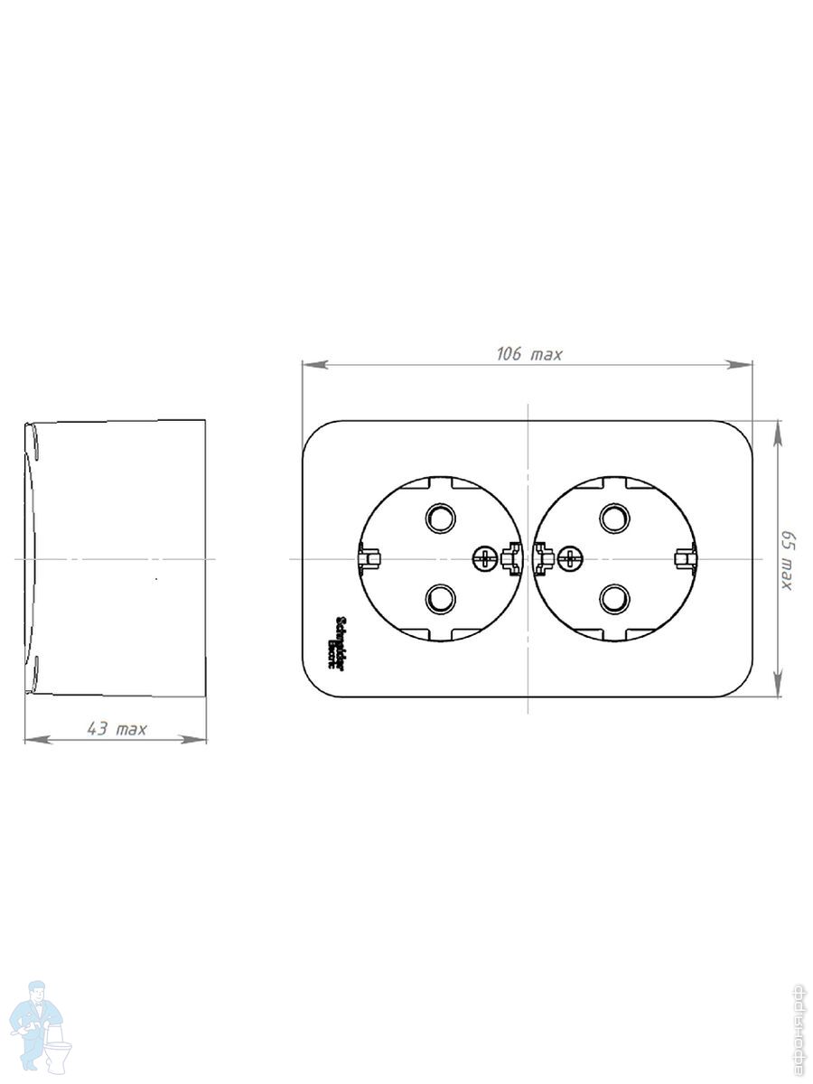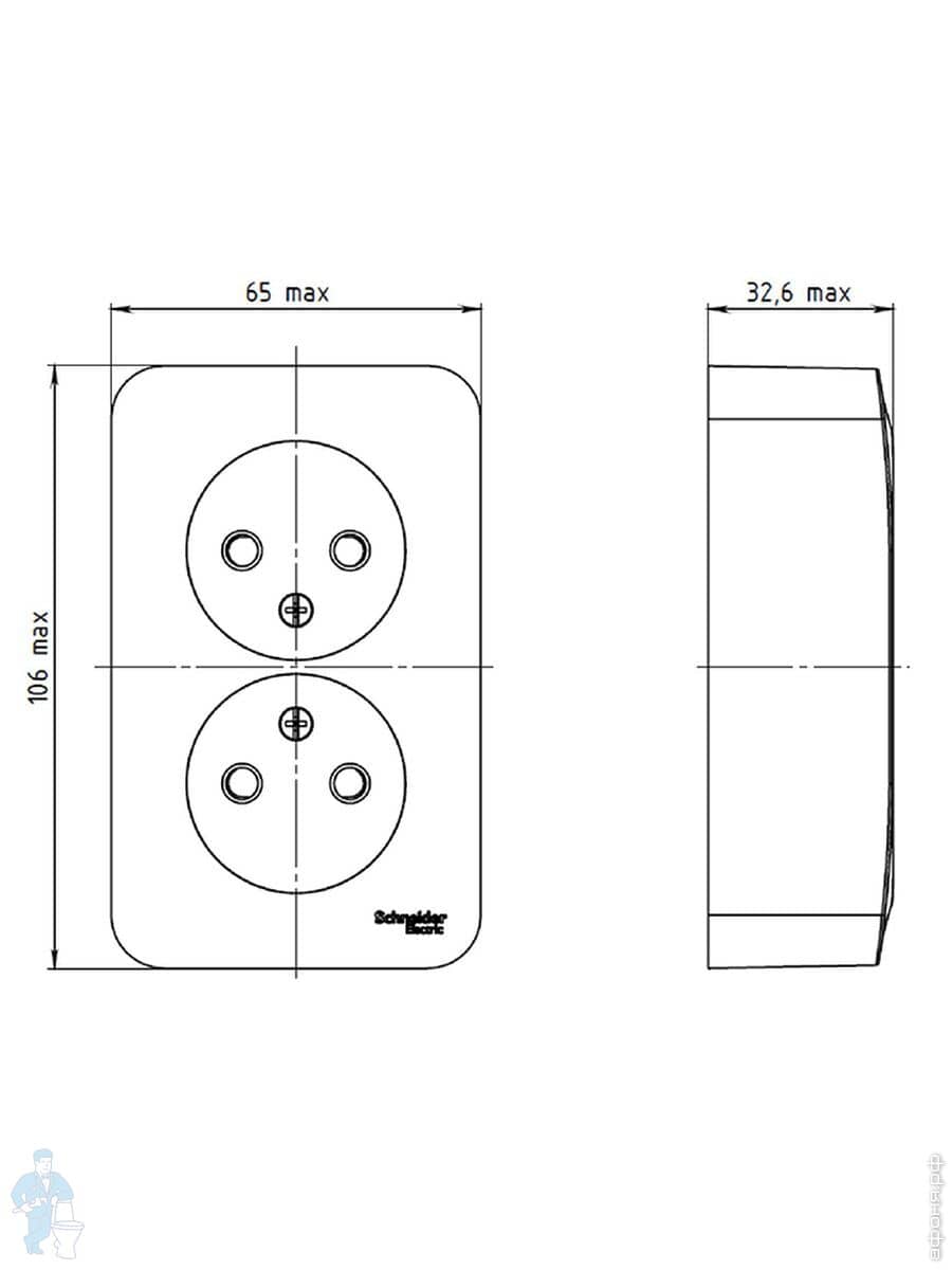 Розетка Systeme Electric BLANCA наружная двойная без заземления изол.пл, 16А 250В, белый BLNRA000211Код: 280945